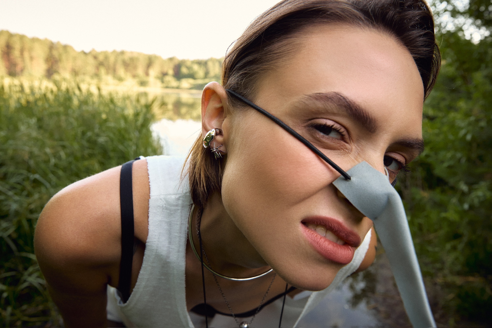 Серебряная моносерьга «Комар ВАСилий» black