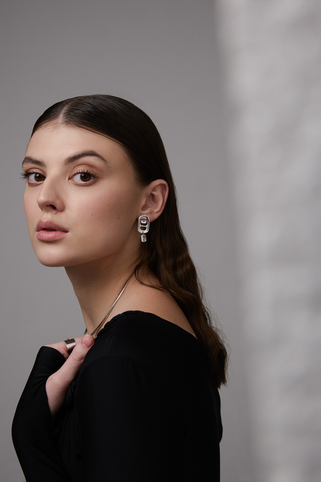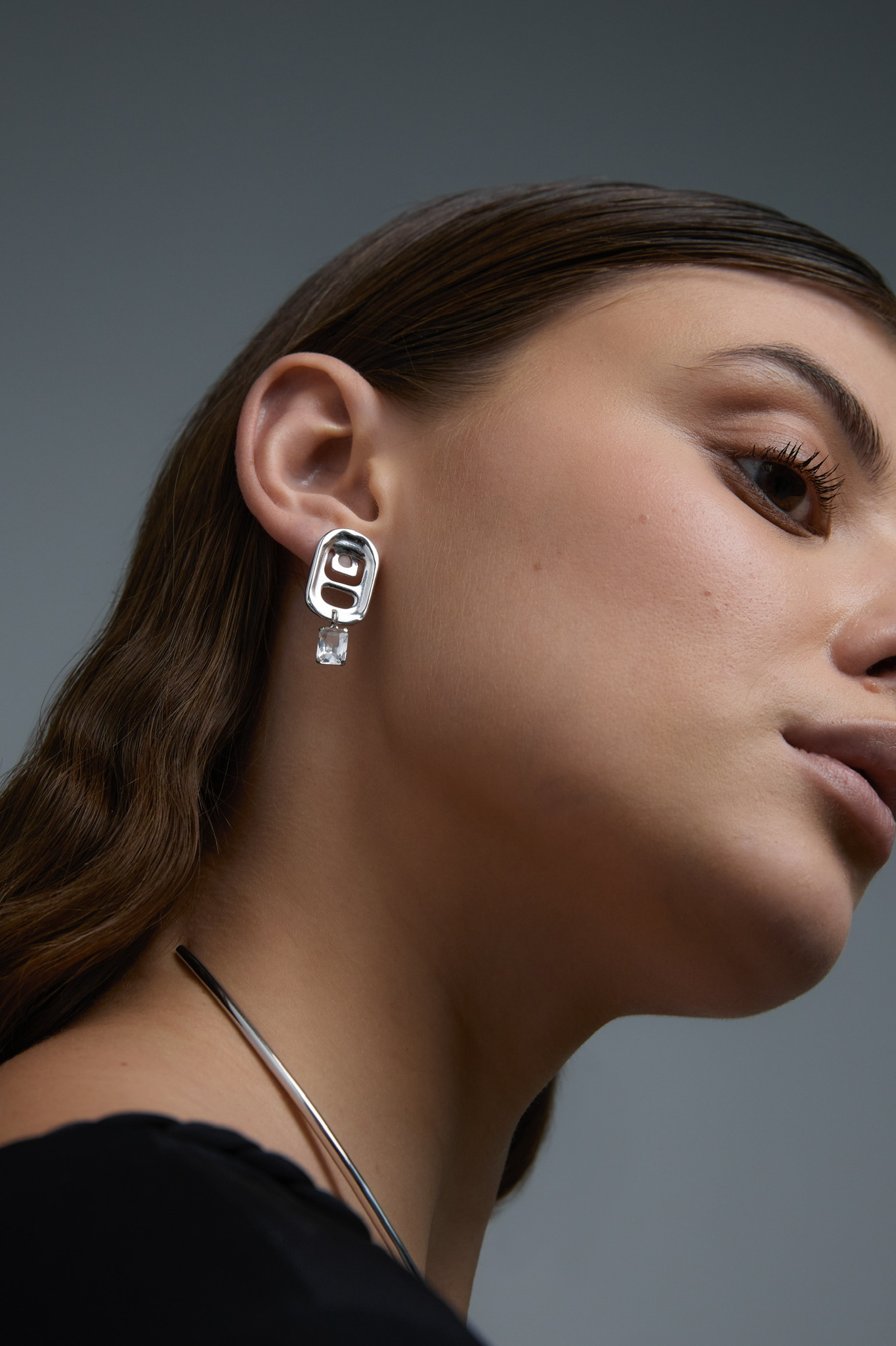 Серебряная моносерьга «Открывайся» с горным хрусталем