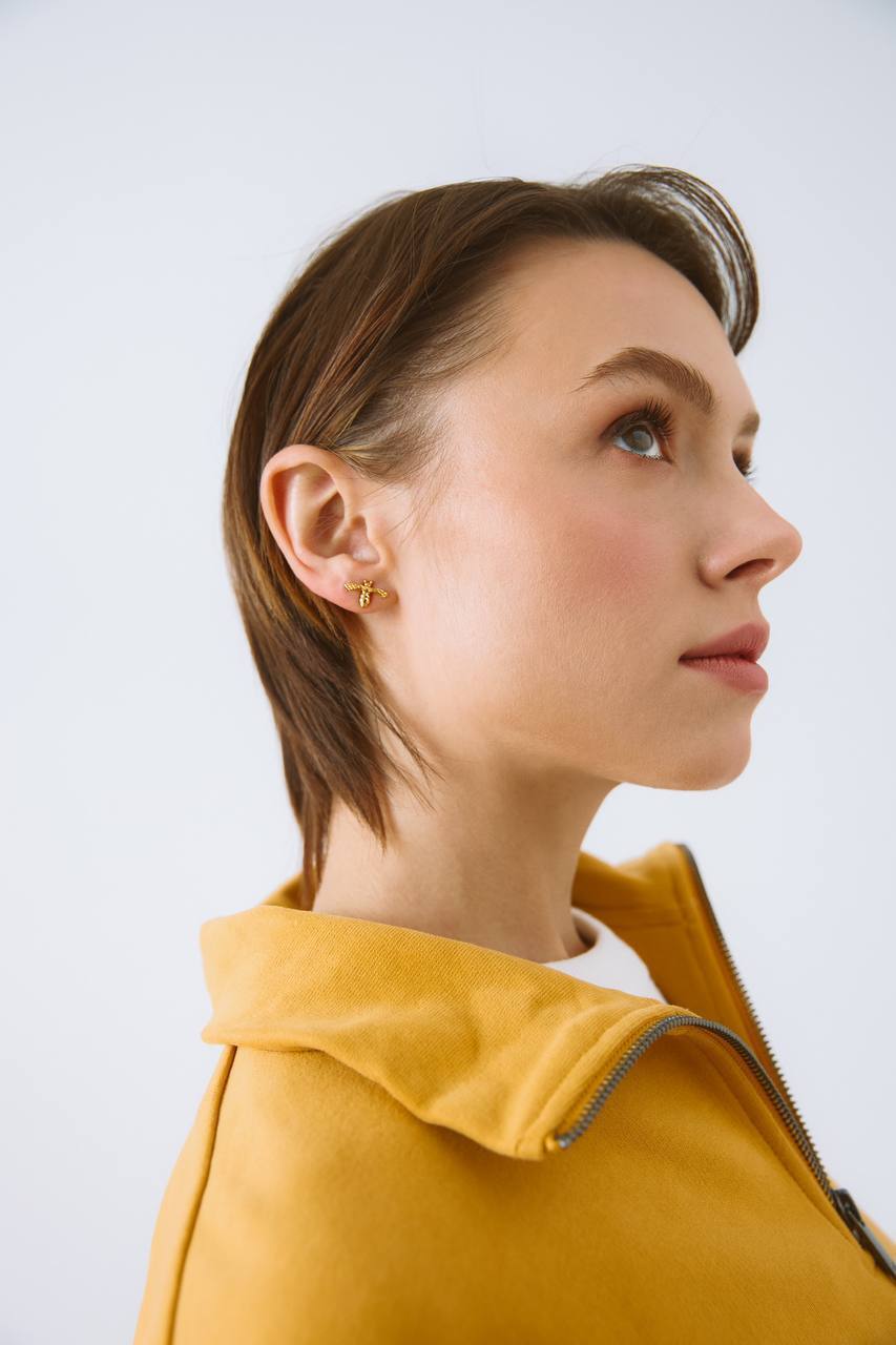 Серебряная моносерьга пчела "Nature" gold