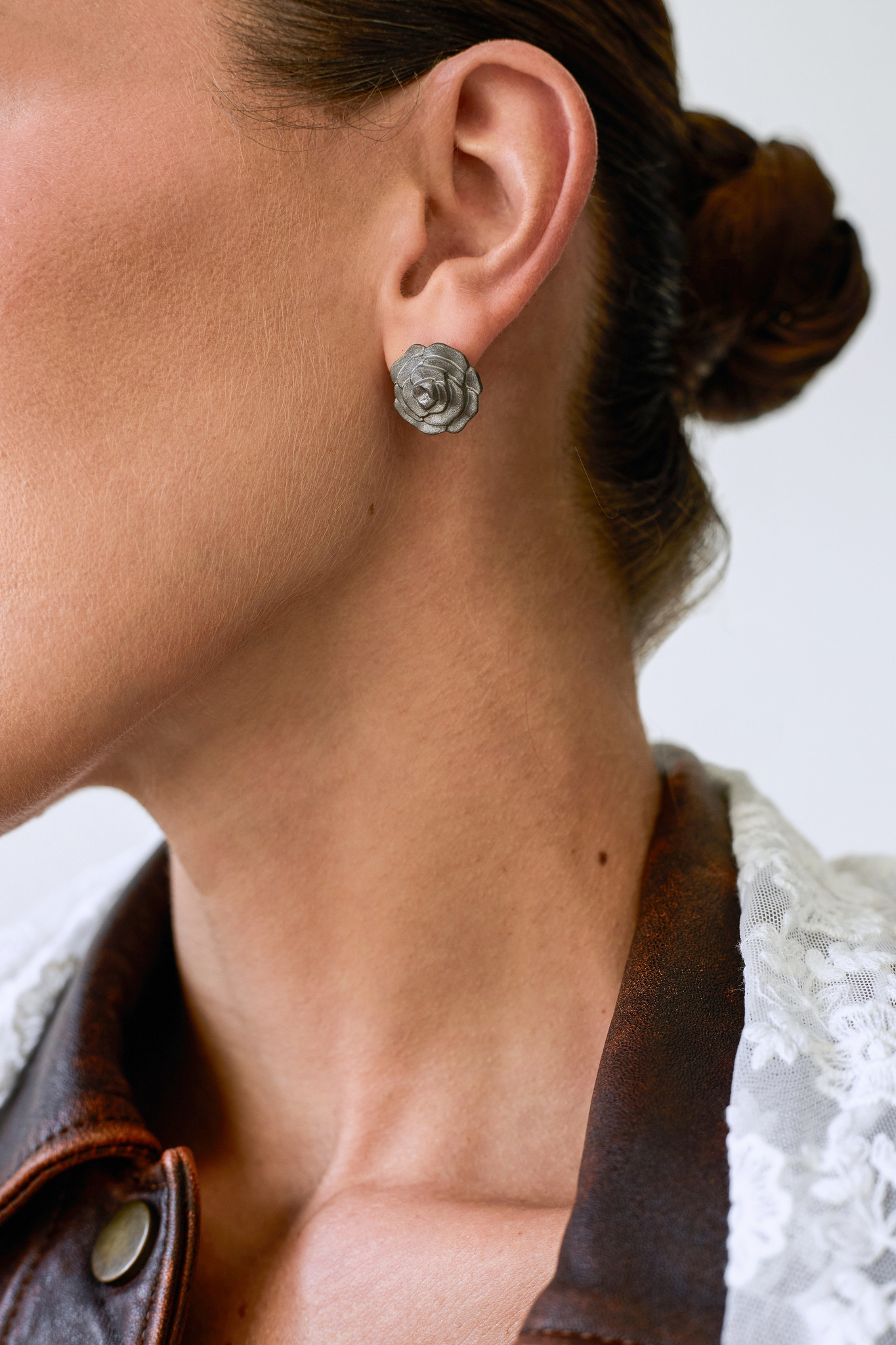 Серебряная моносерьга «Роза» black