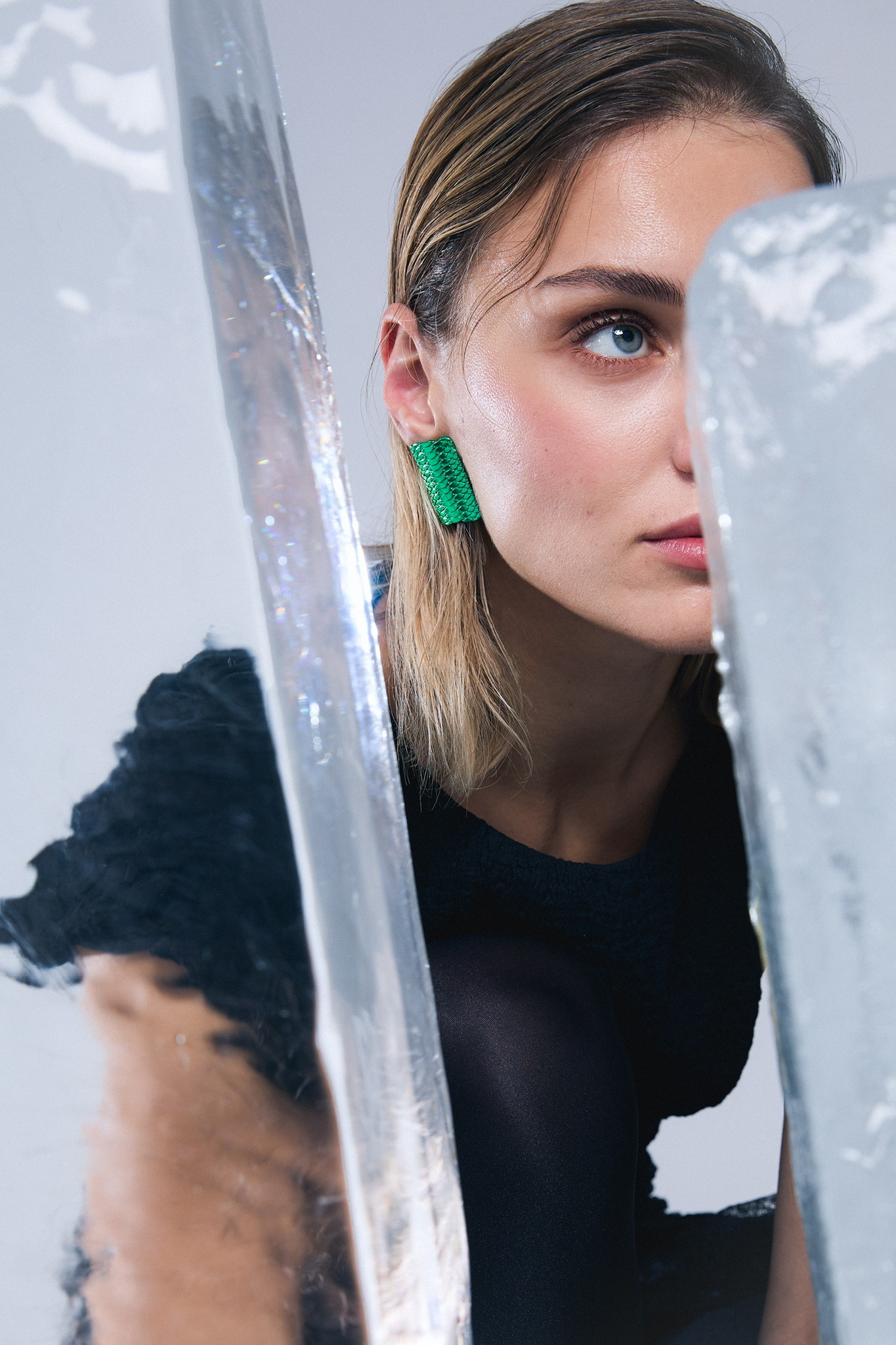 Серебряная моносерьга «Змеиная натура» green