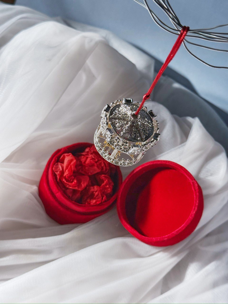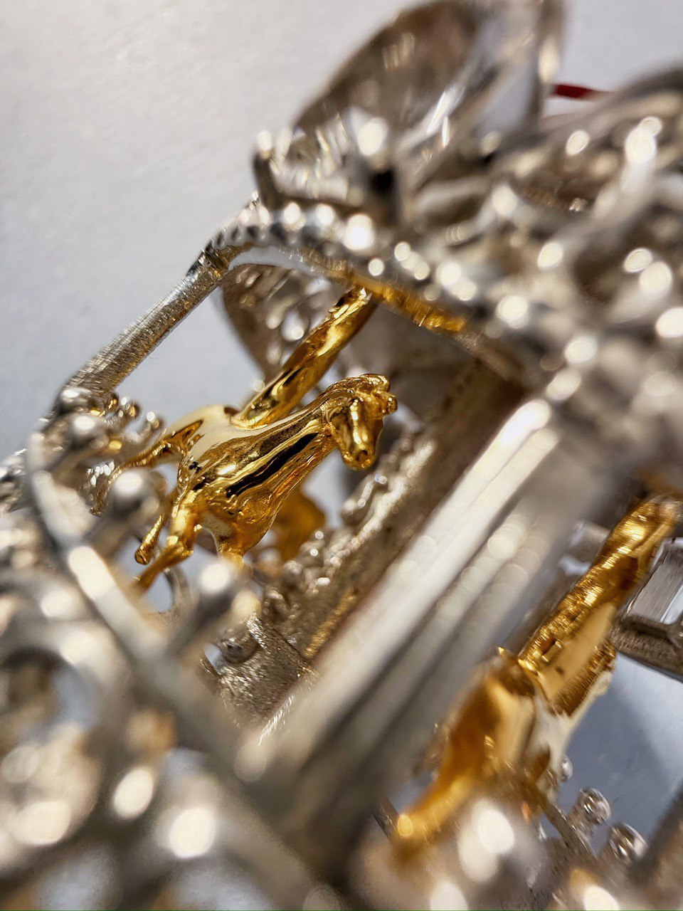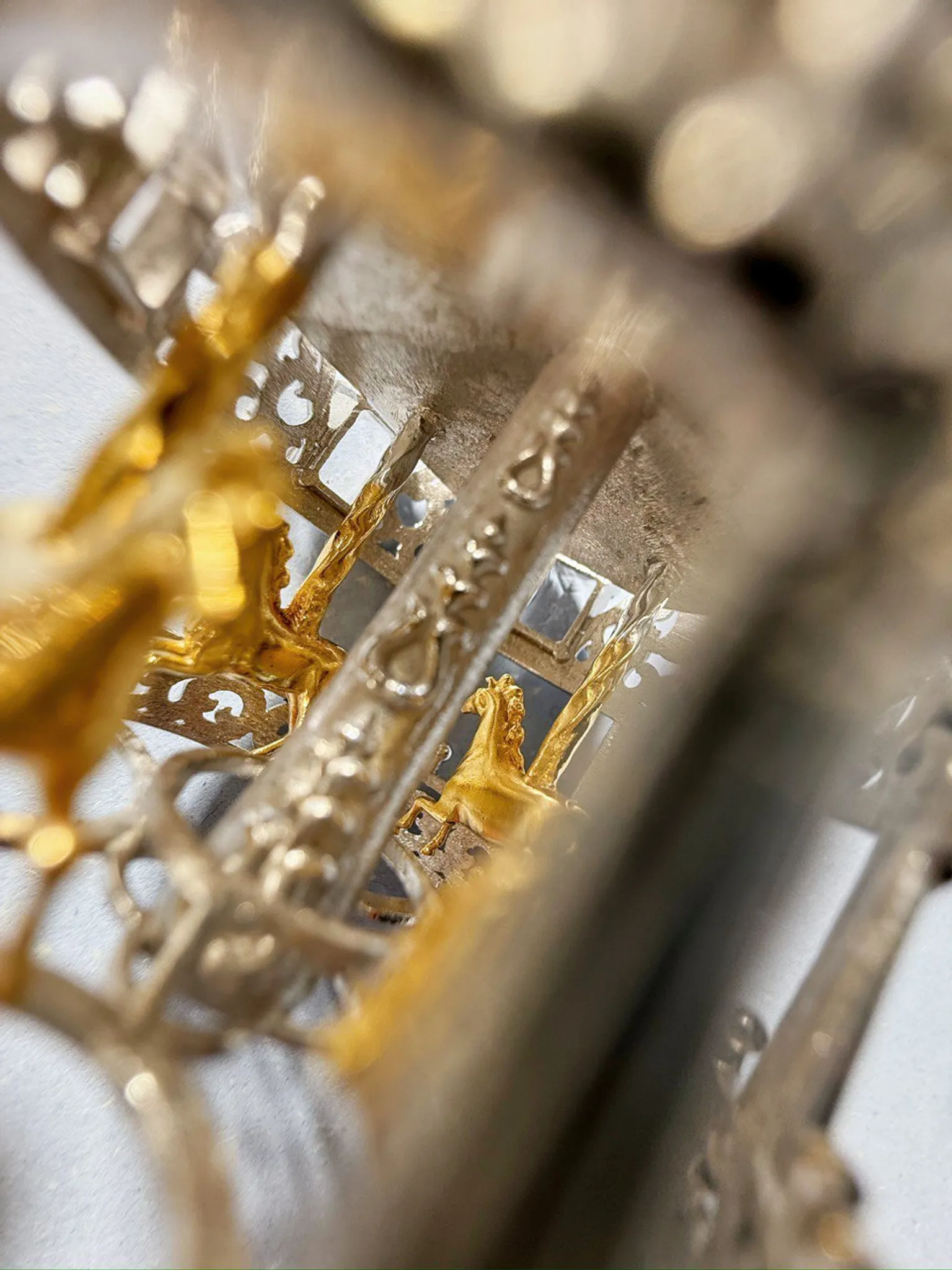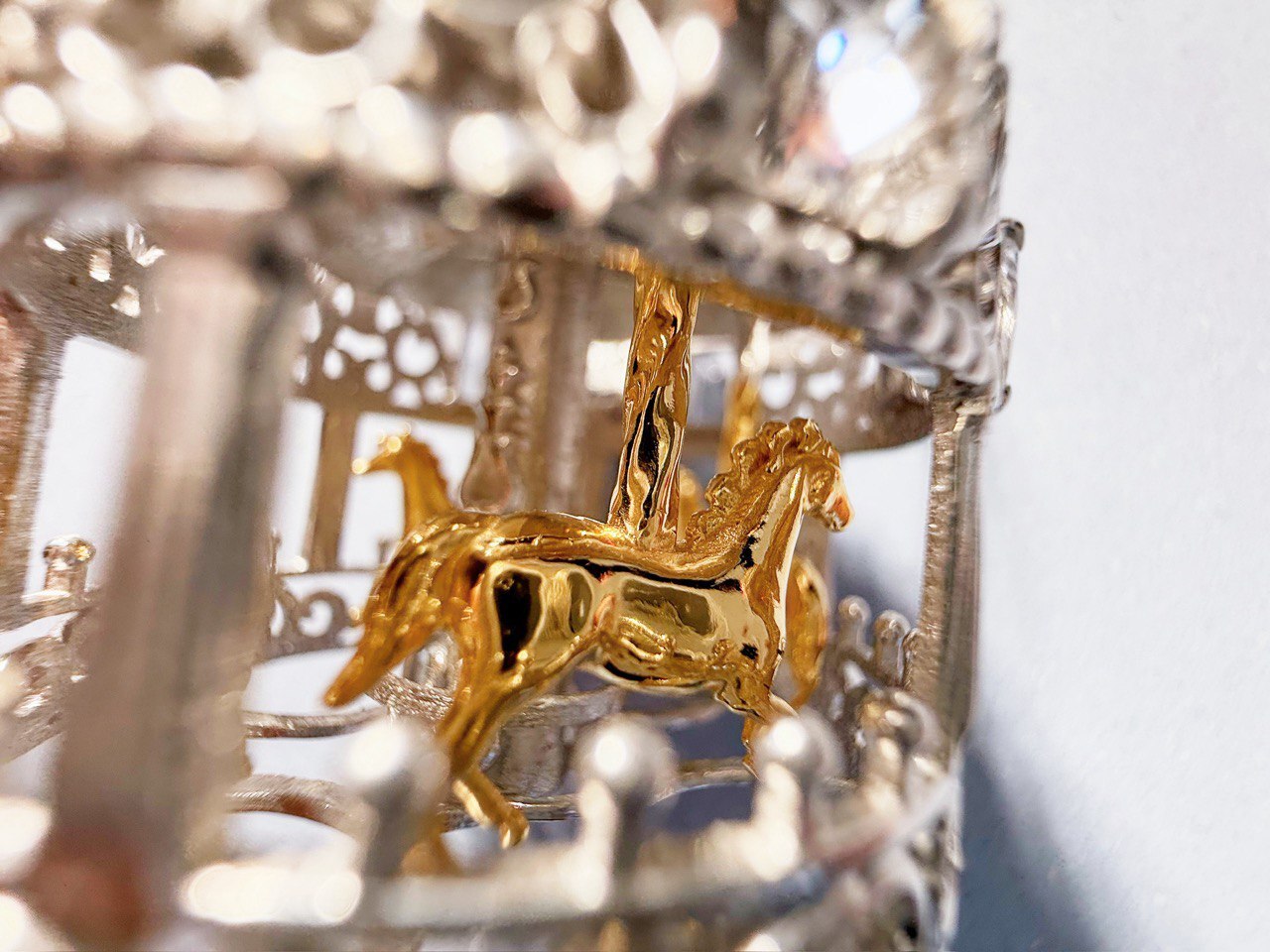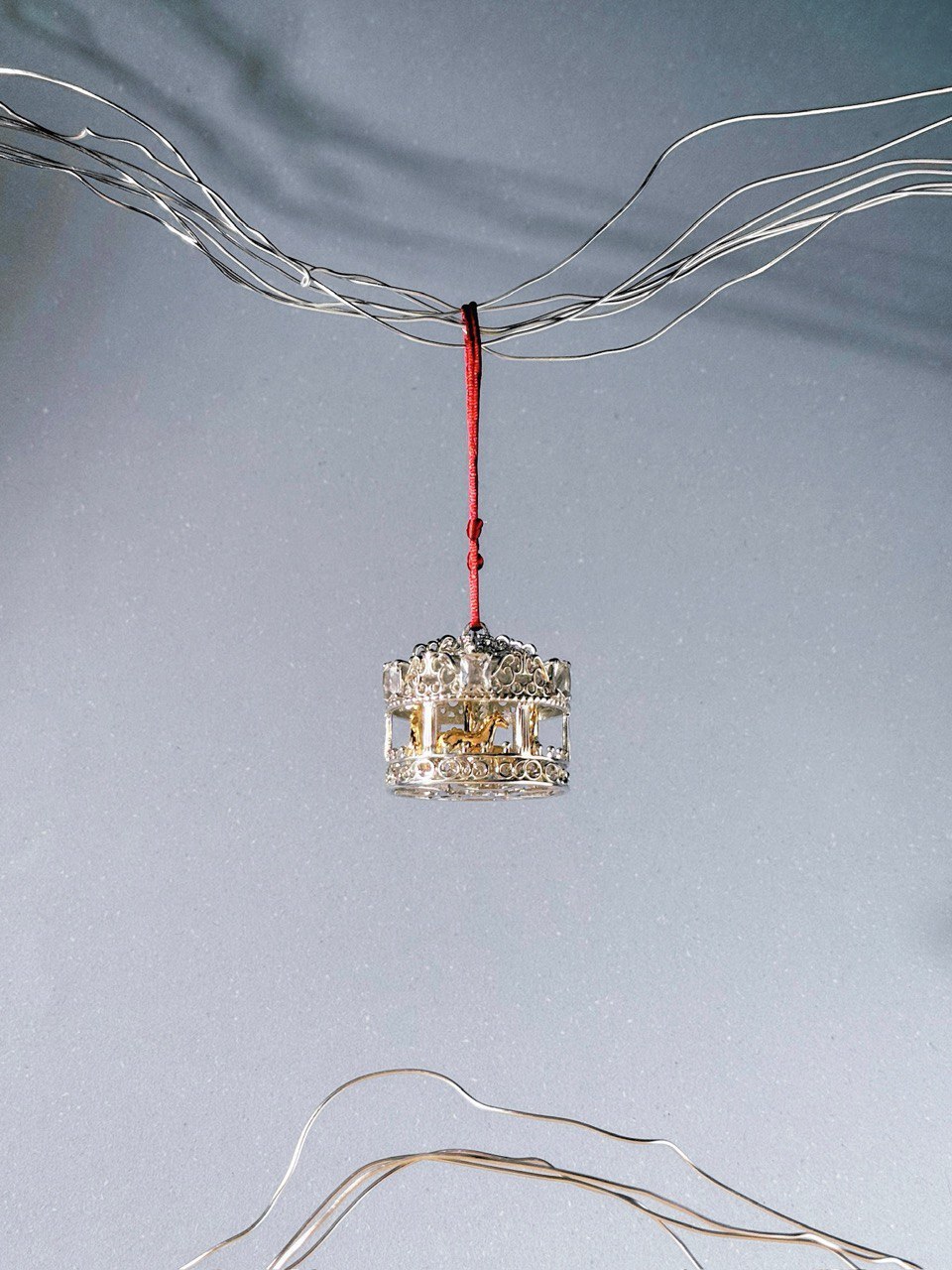 Серебряная новогодняя игрушка «Карусель» с позолотой