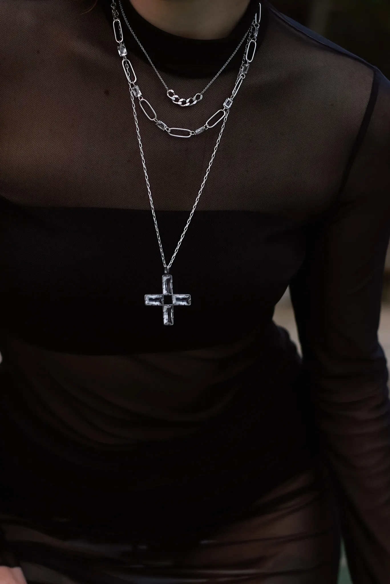 Серебряная основа-крест «Святая» с горным хрусталем
