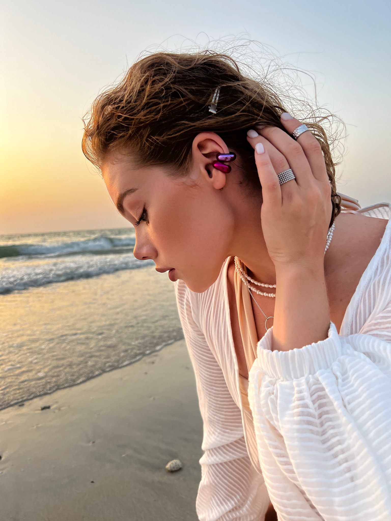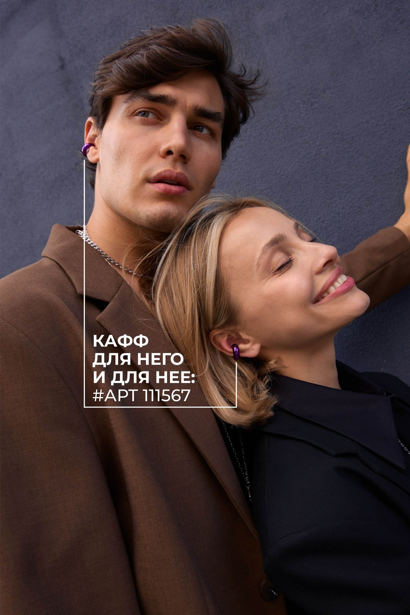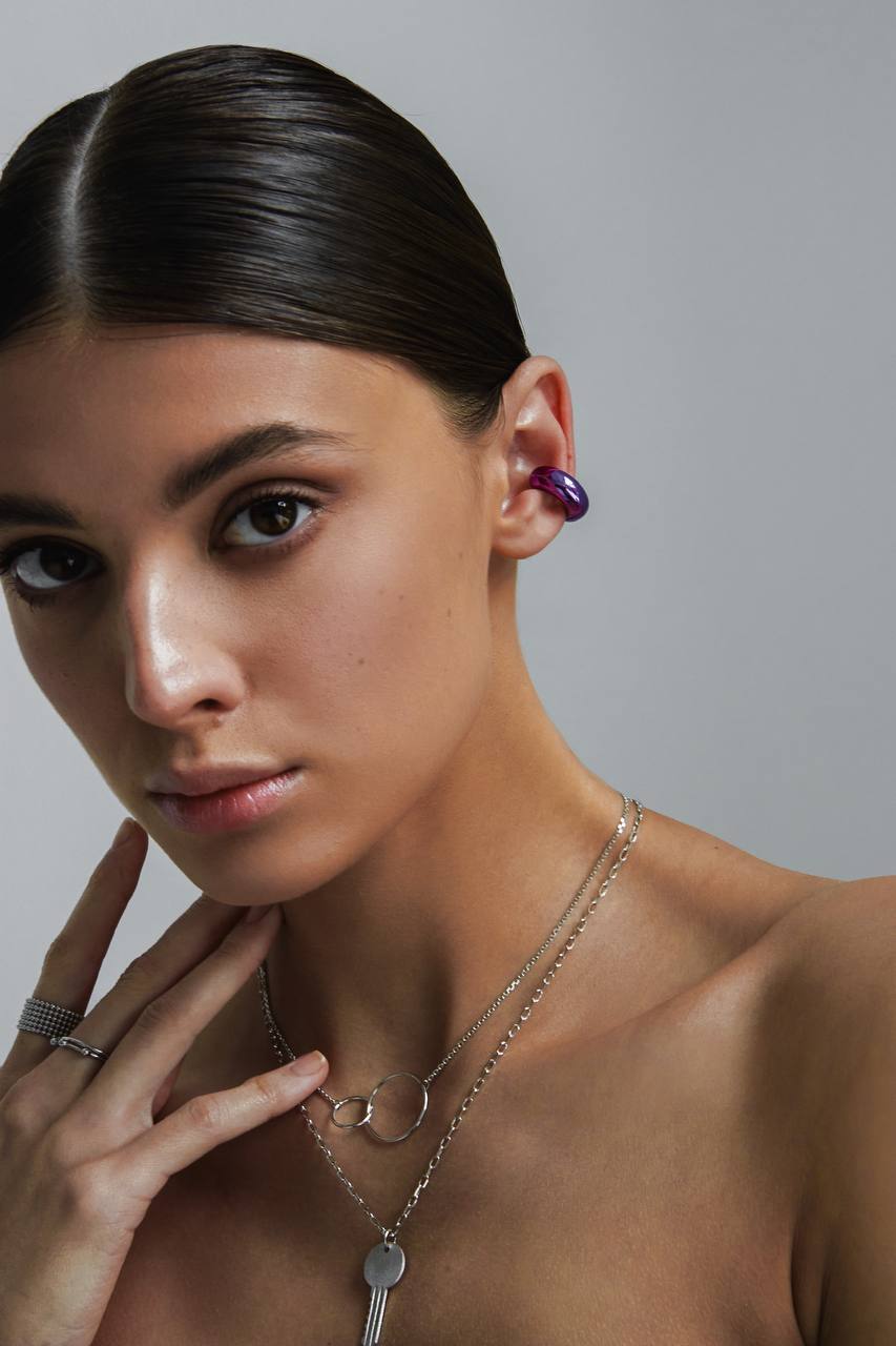 Серебряная серьга-кафф "Bubble", как бублик purple