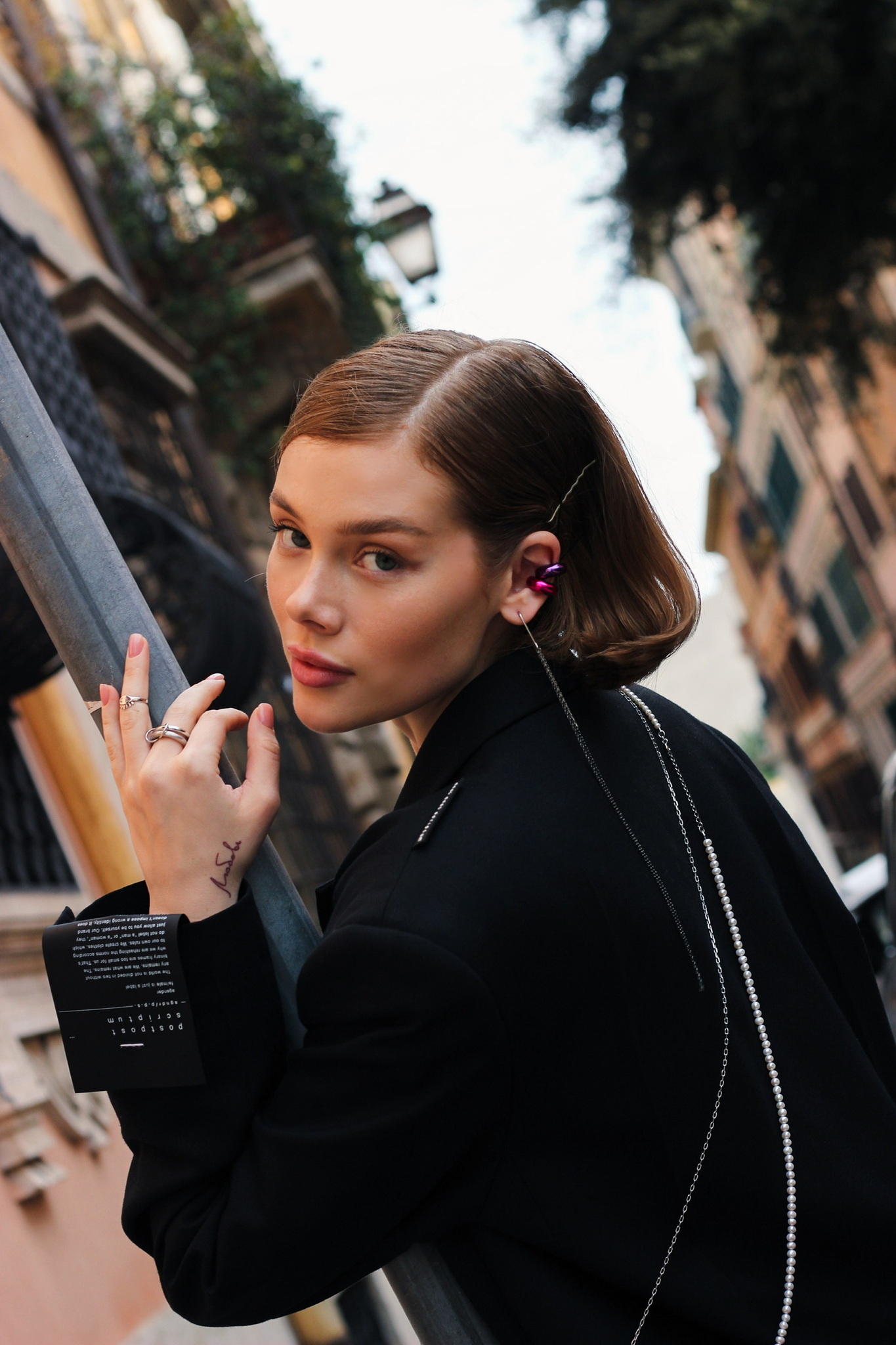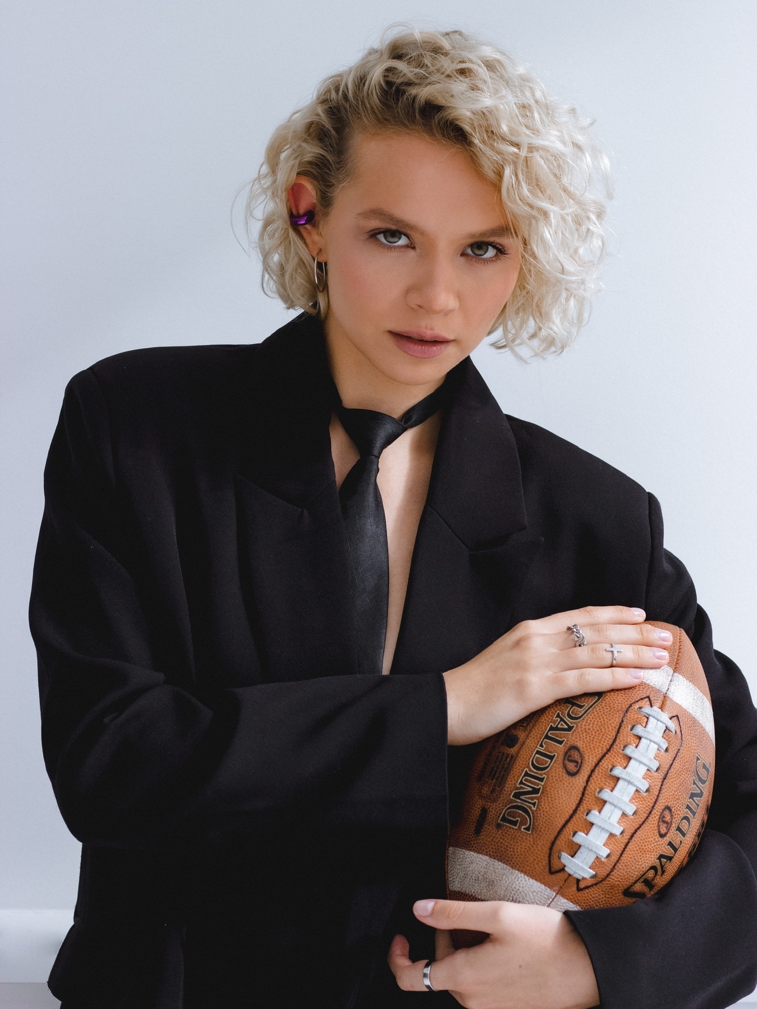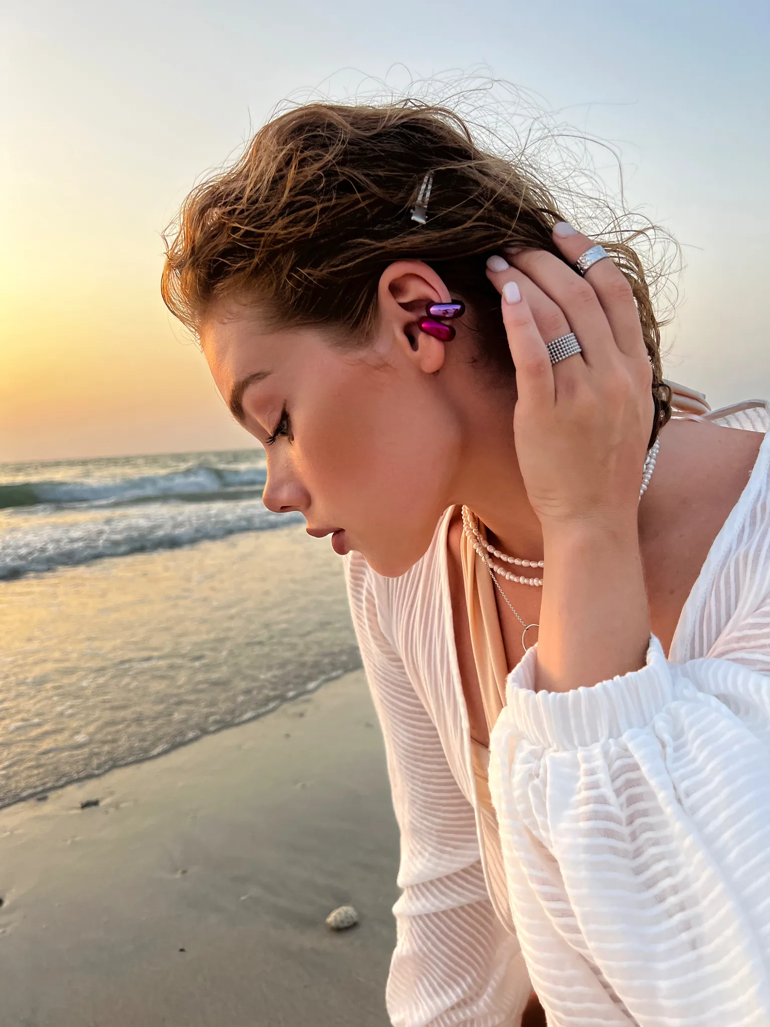 Серебряная серьга-кафф "Bubble", как бублик purple