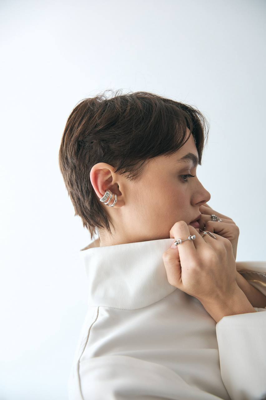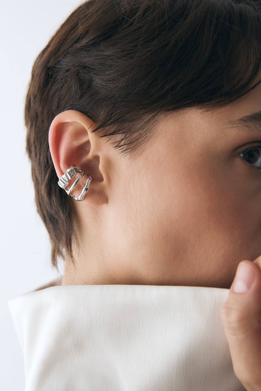 Серебряная серьга-кафф «Фактуры»