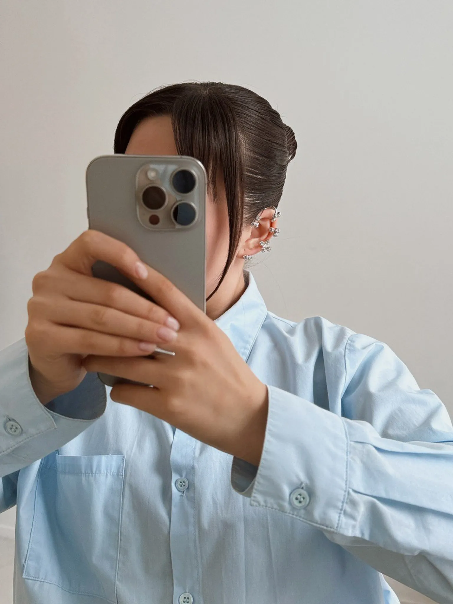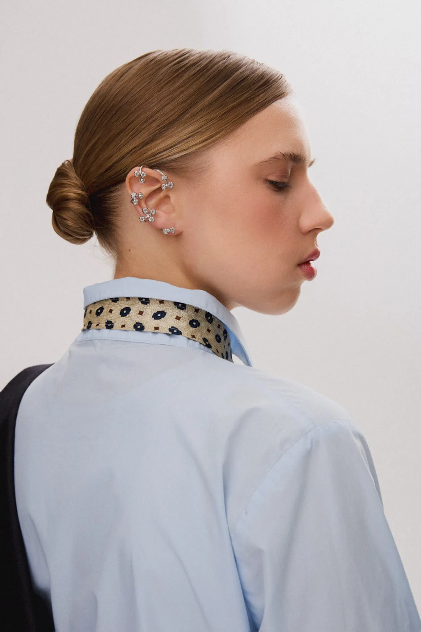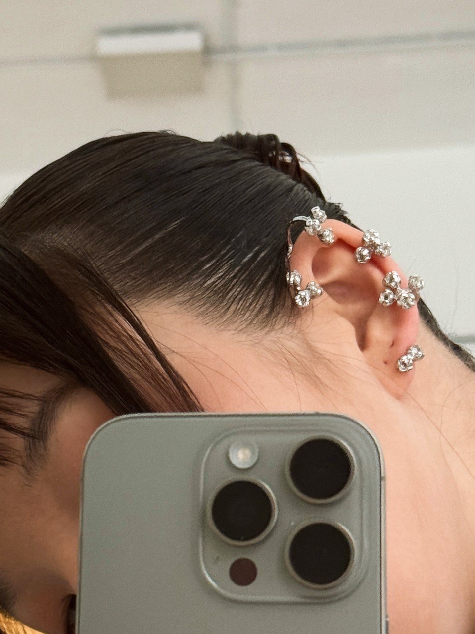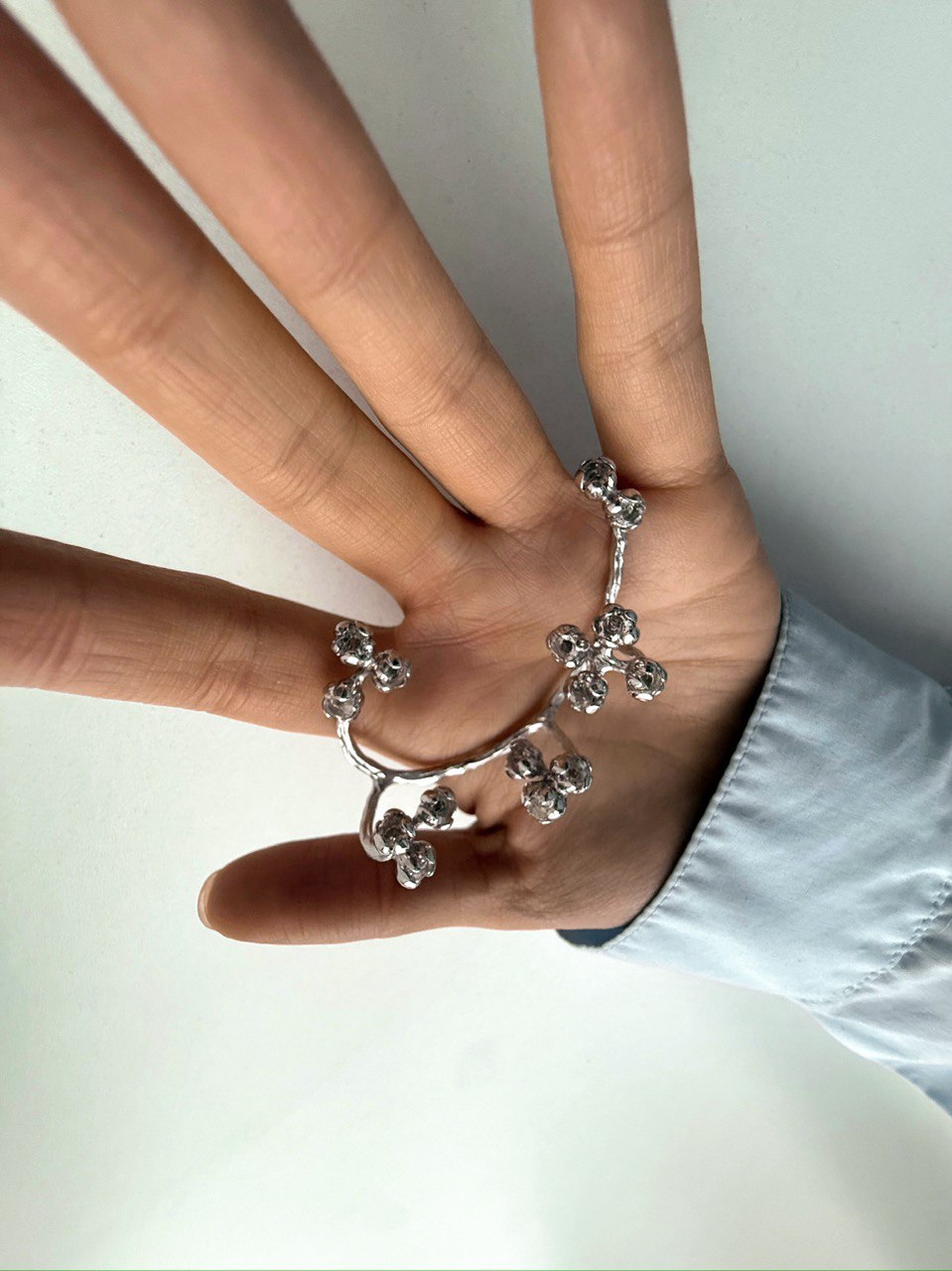 Серебряная серьга-кафф кувшинки «Васюганские болота» с горным хрусталем