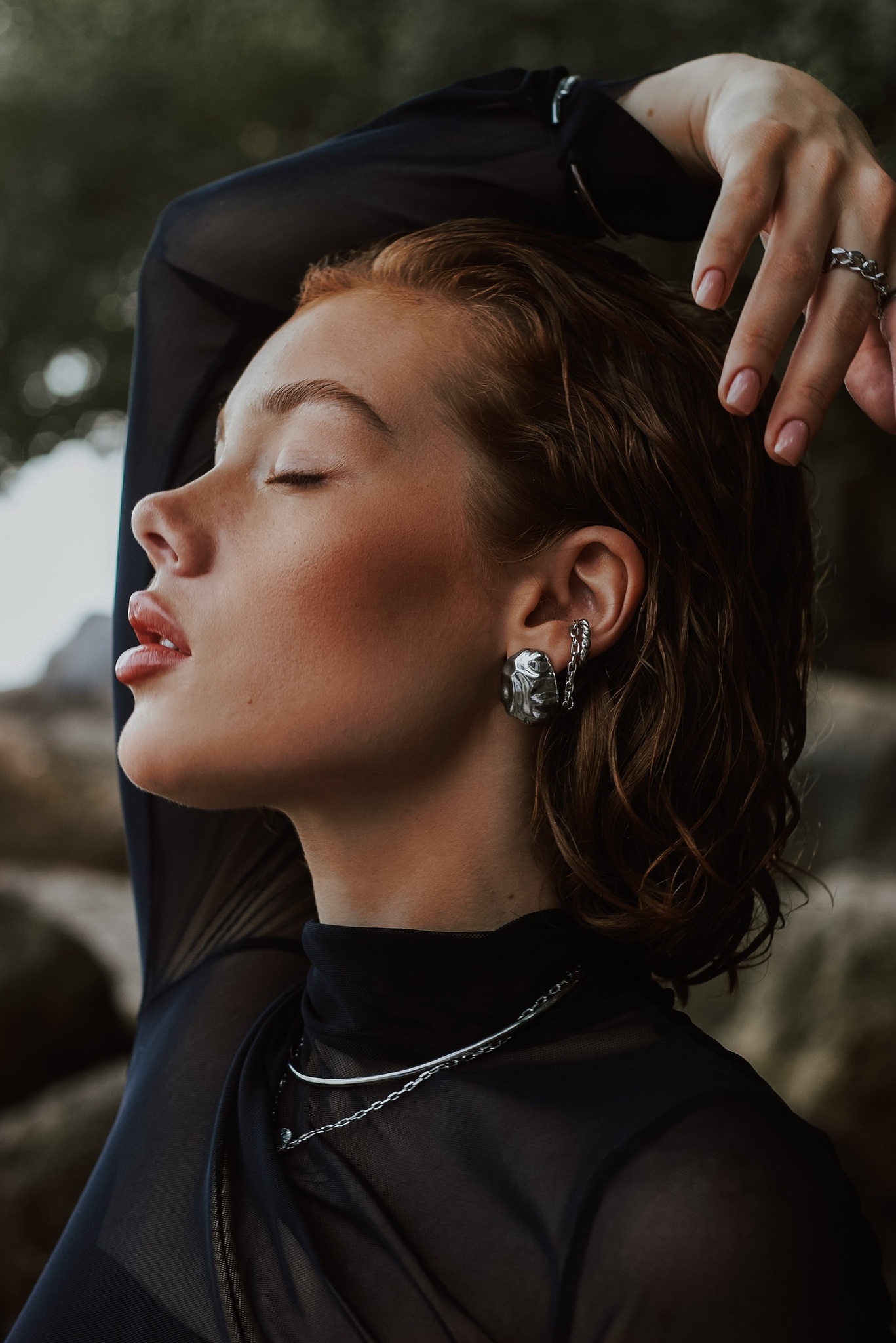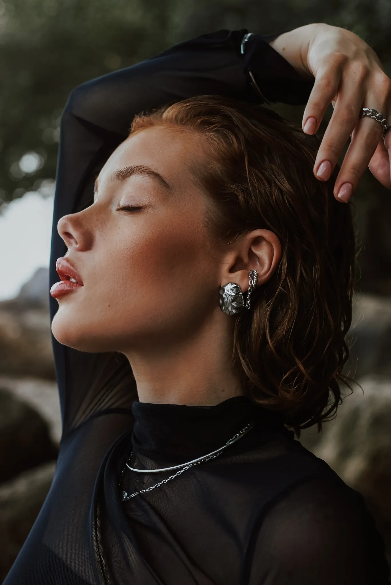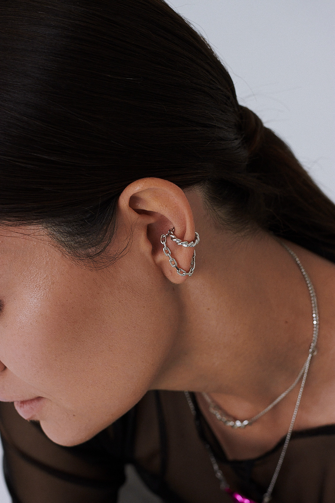 Серебряная серьга-кафф «Сближение»