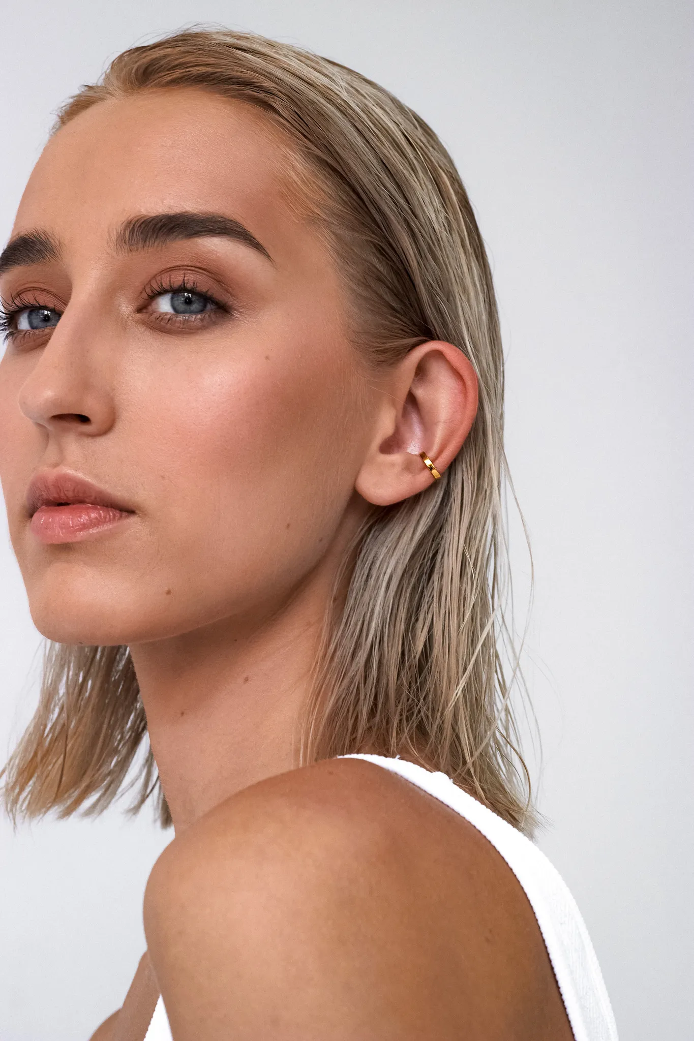 Серебряная серьга-кафф "Сircle gold", 2 мм