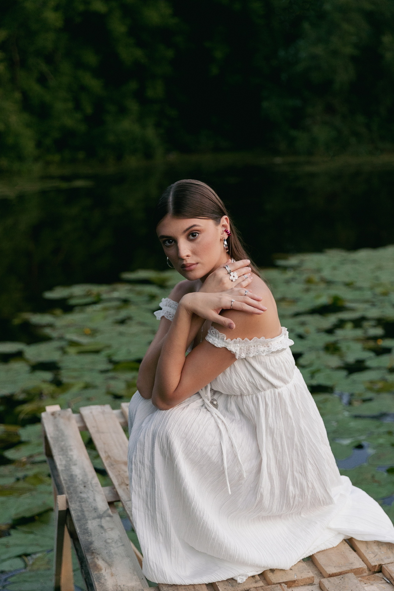 Серебряная серьга-кафф «Цыпа» fuchsia