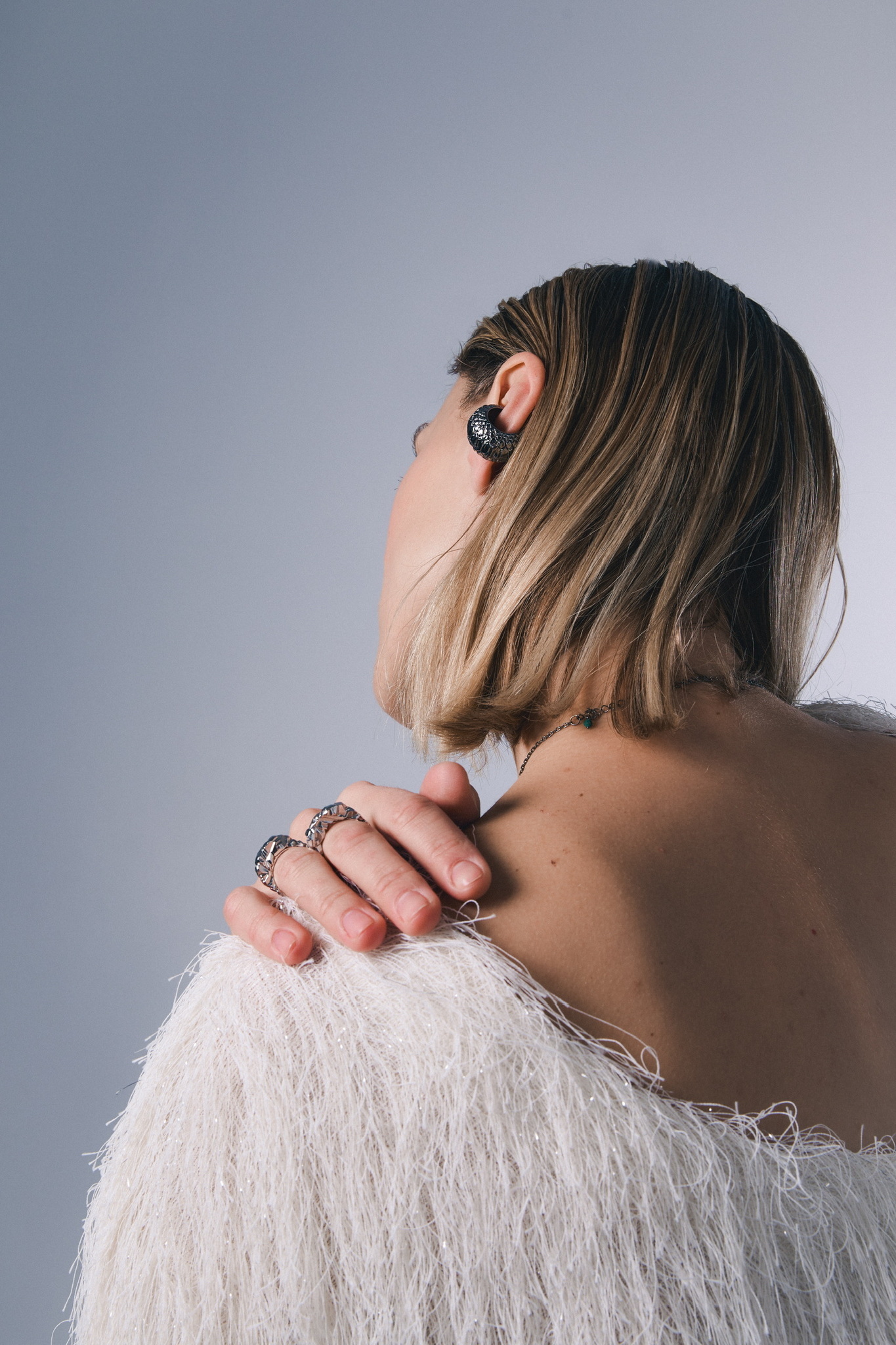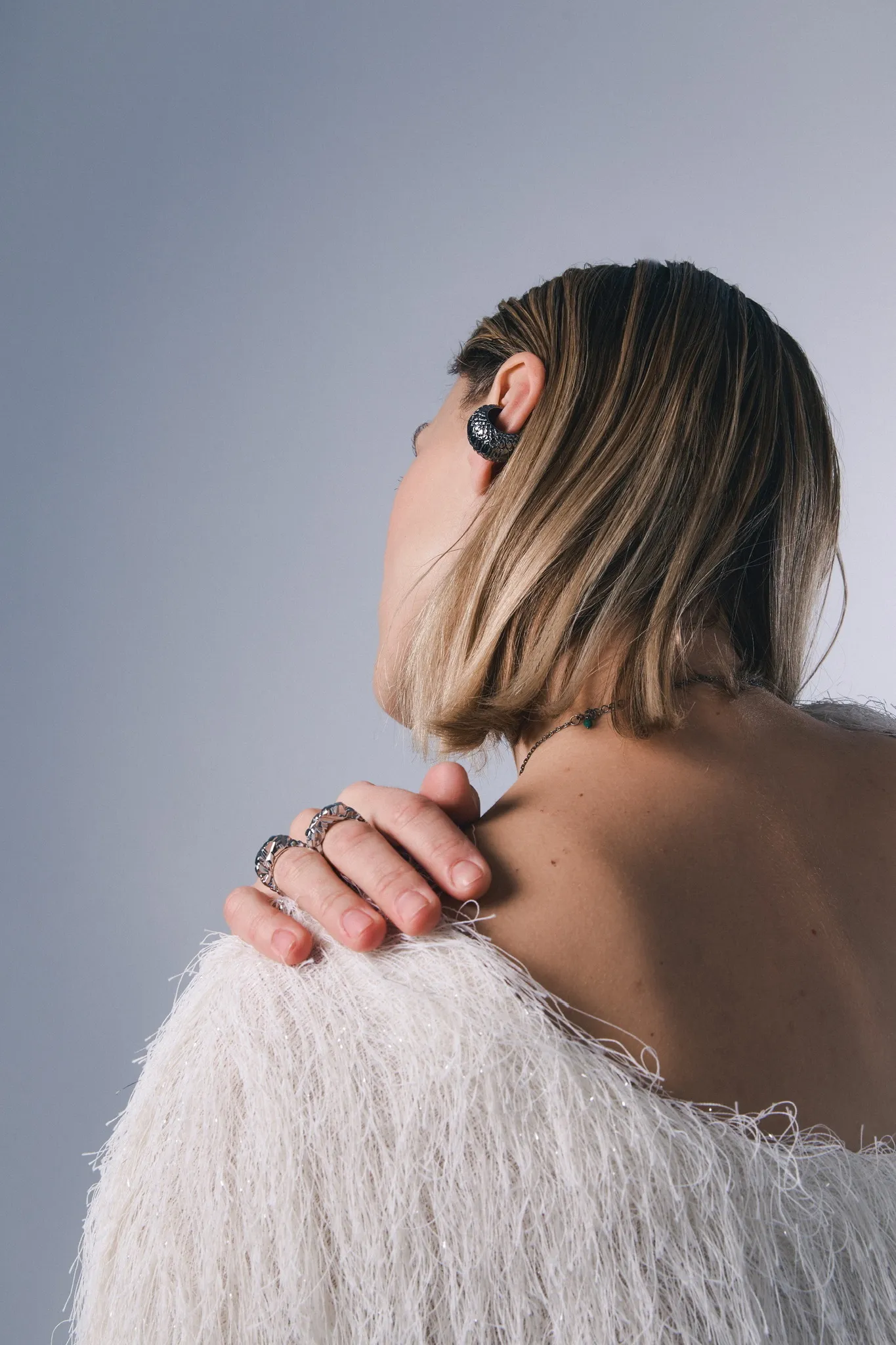 Серебряная серьга-кафф «Змеиная натура» еще больше black