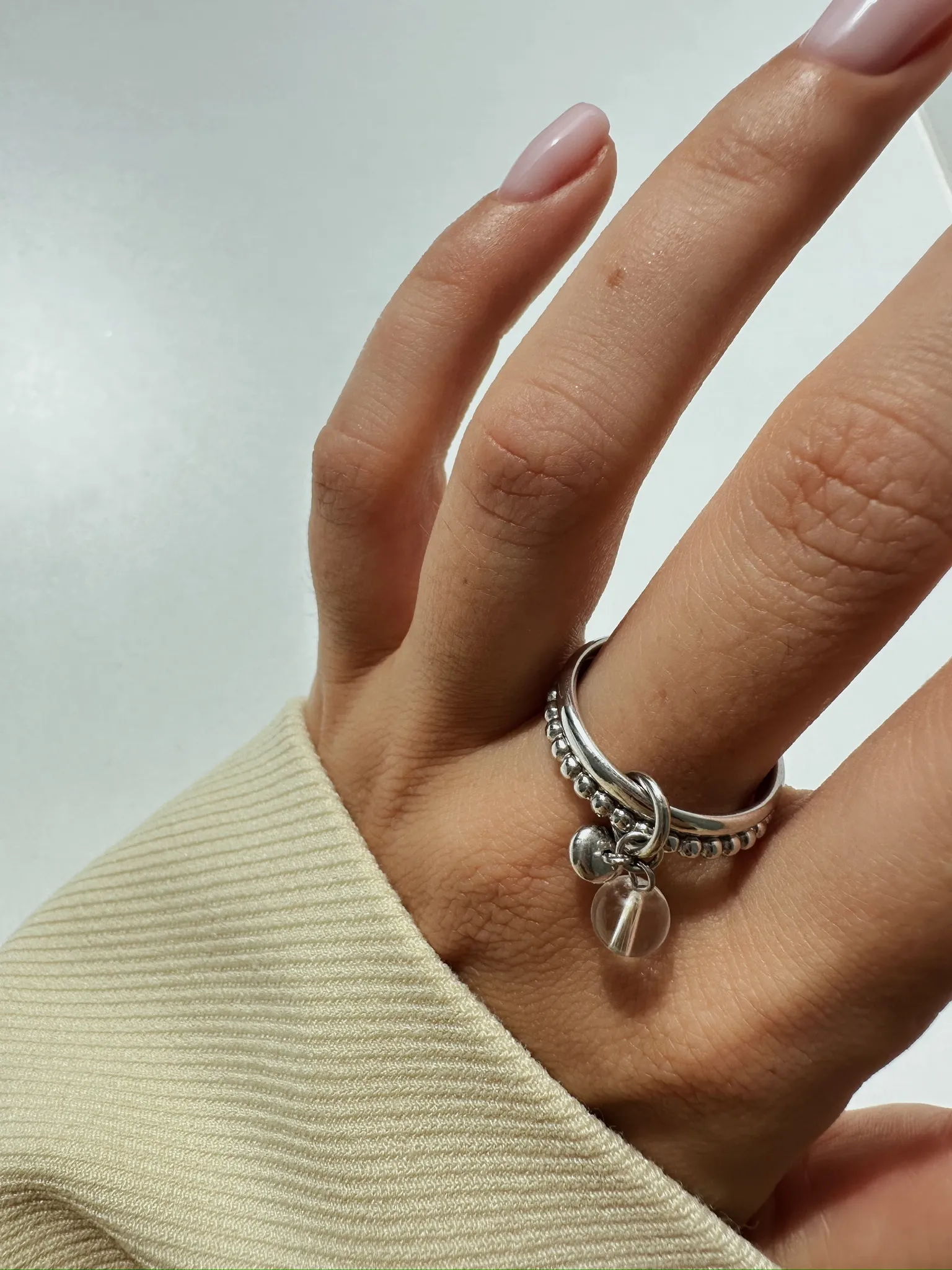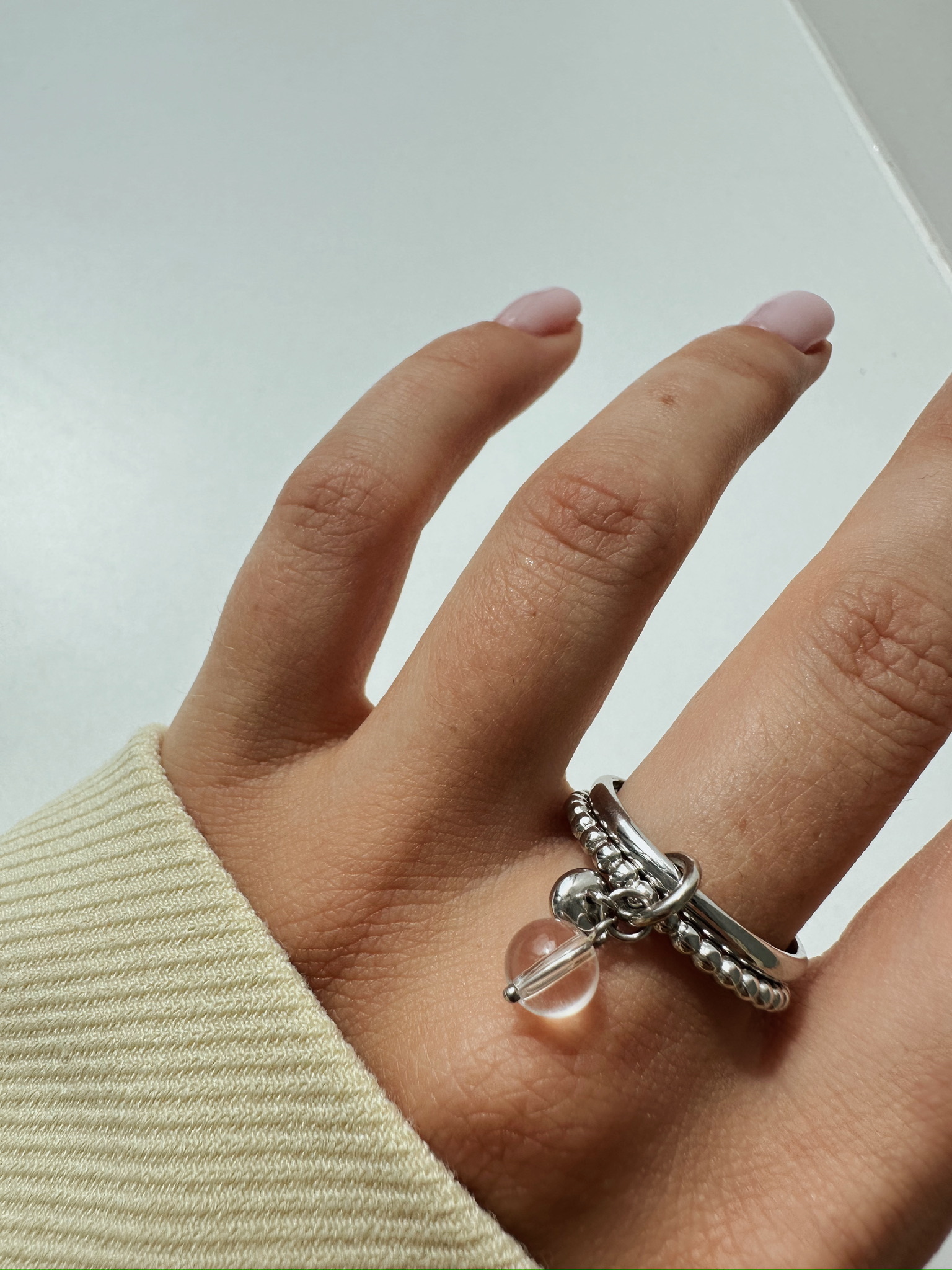 Серебряное двойное кольцо "Bubble" с горным хрусталем