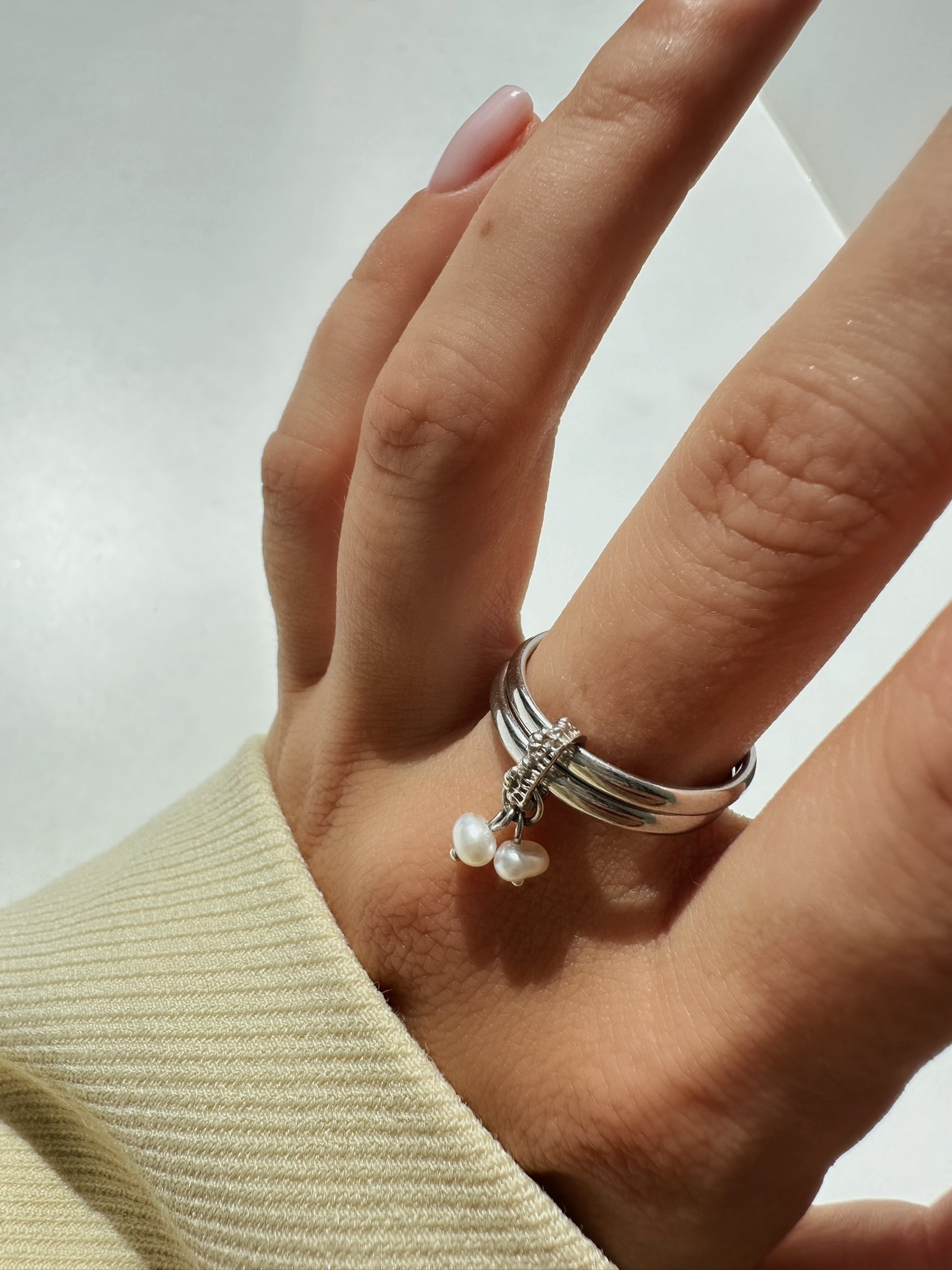 Серебряное двойное кольцо «Кружево» с культивированным жемчугом