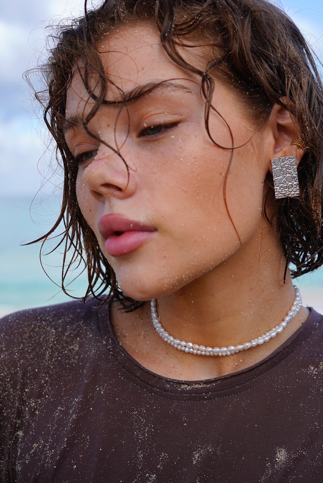 Серебряное колье-чокер "Mango sticky rice" с культивированным жемчугом