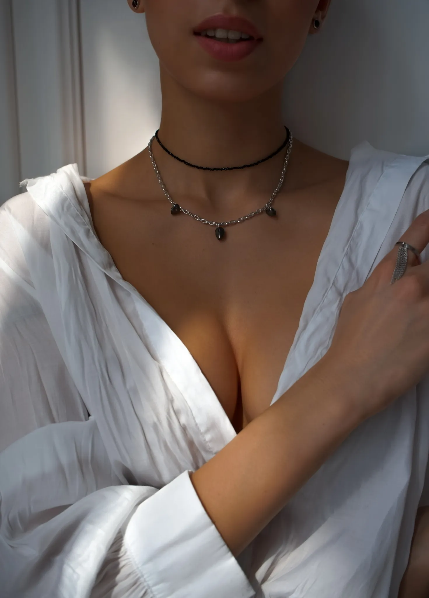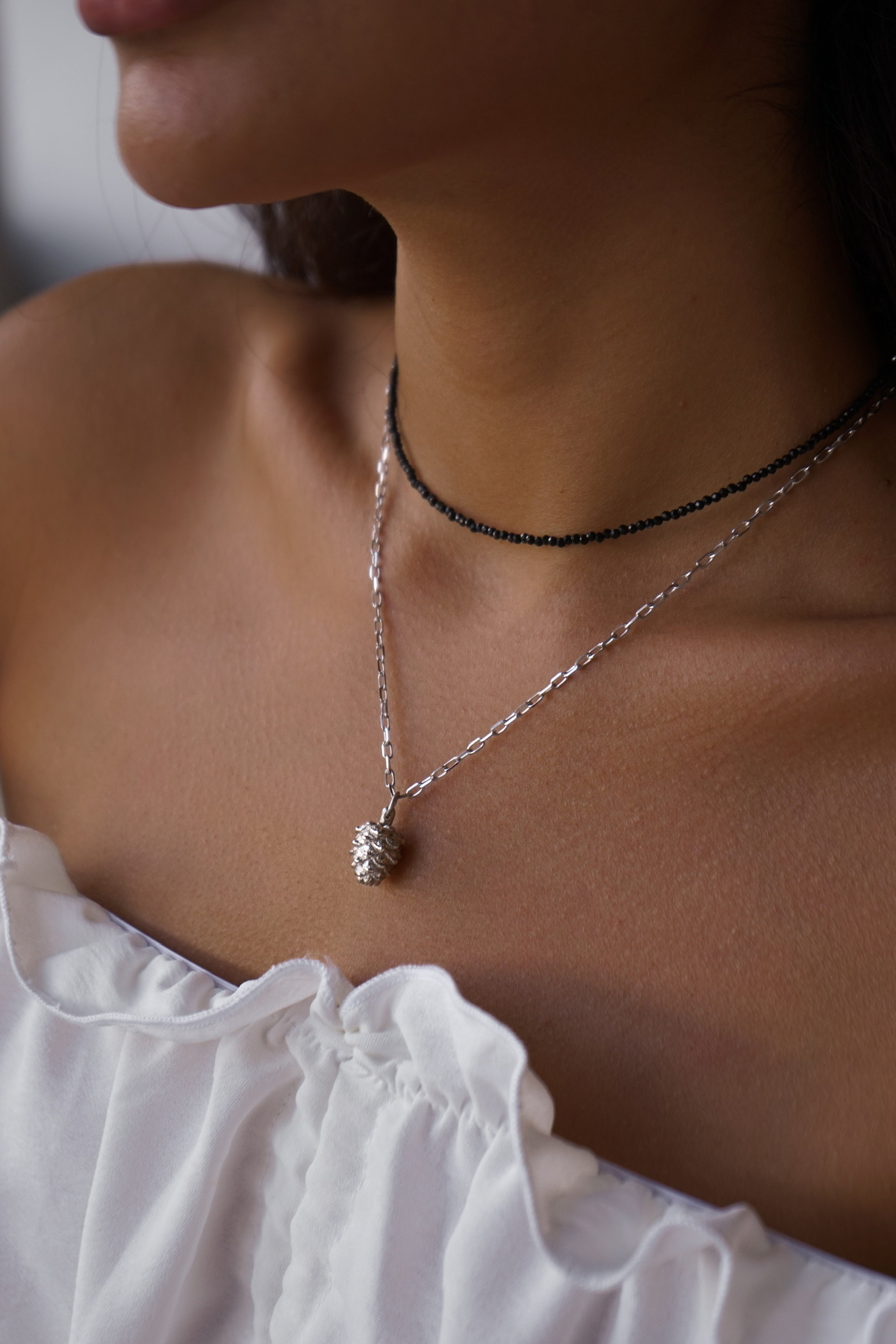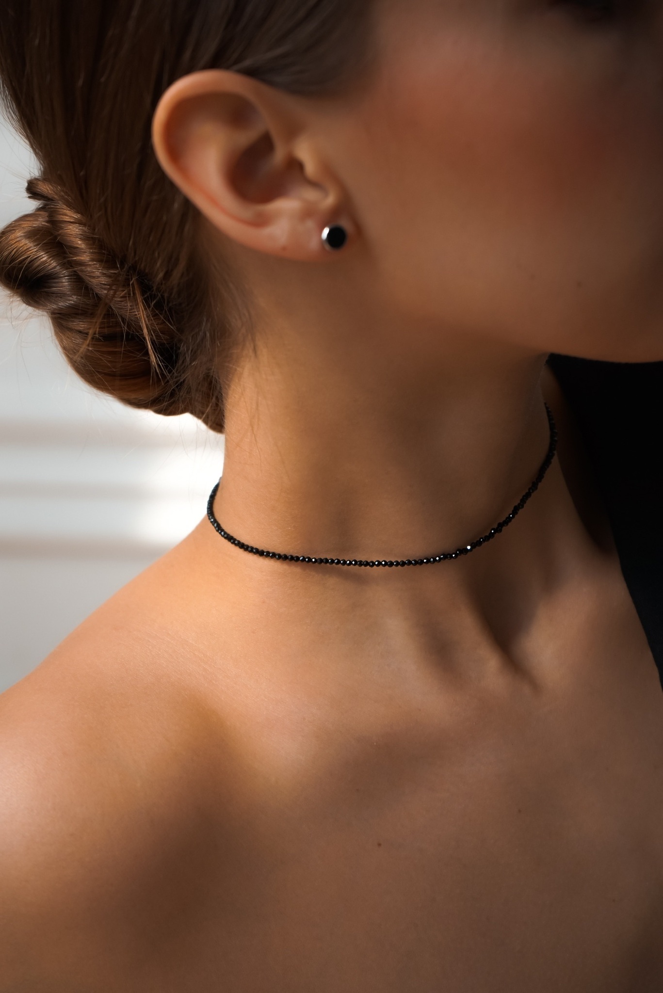 Серебряное колье-чокер со шпинелью "Black"