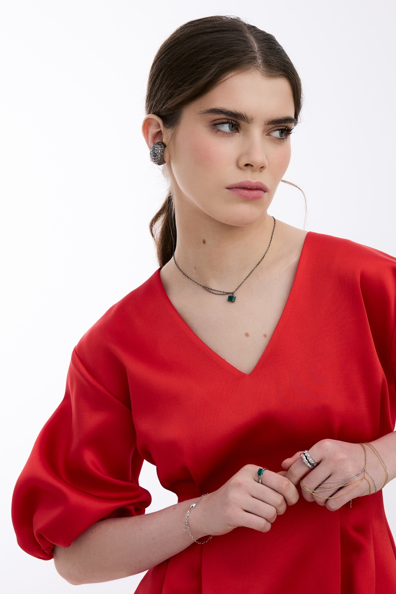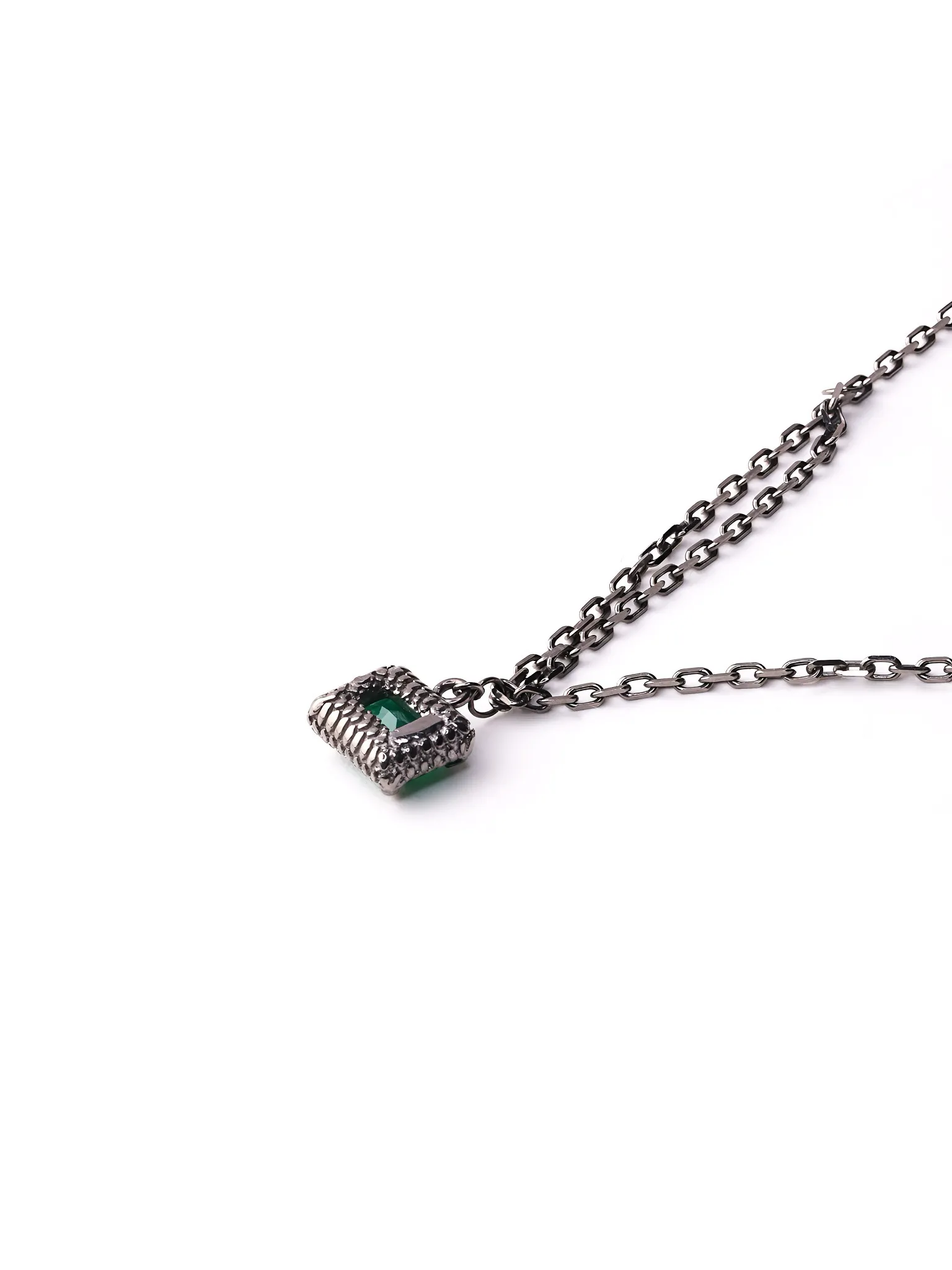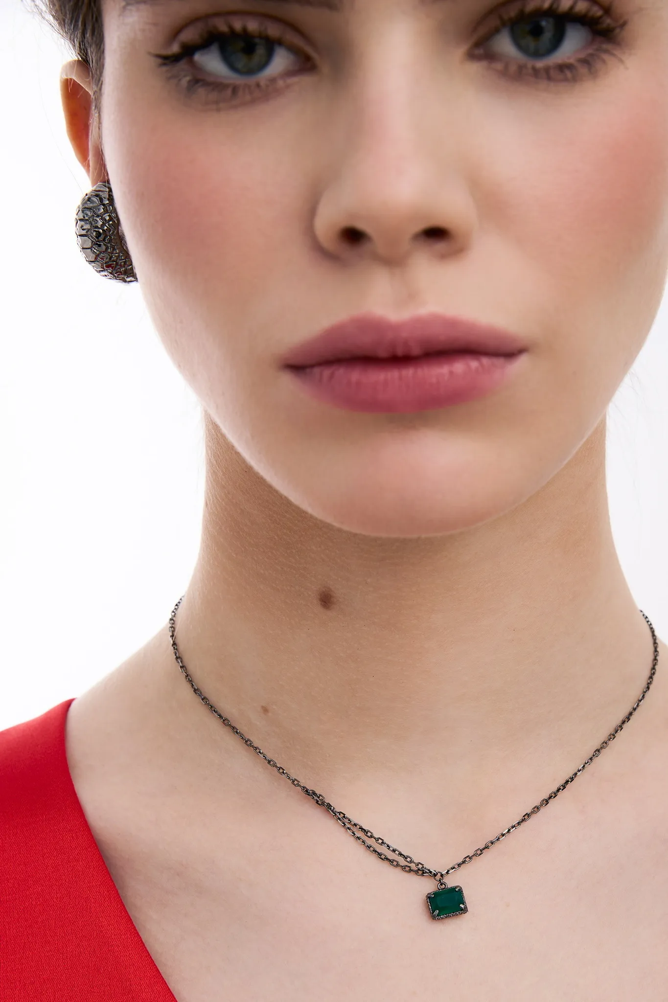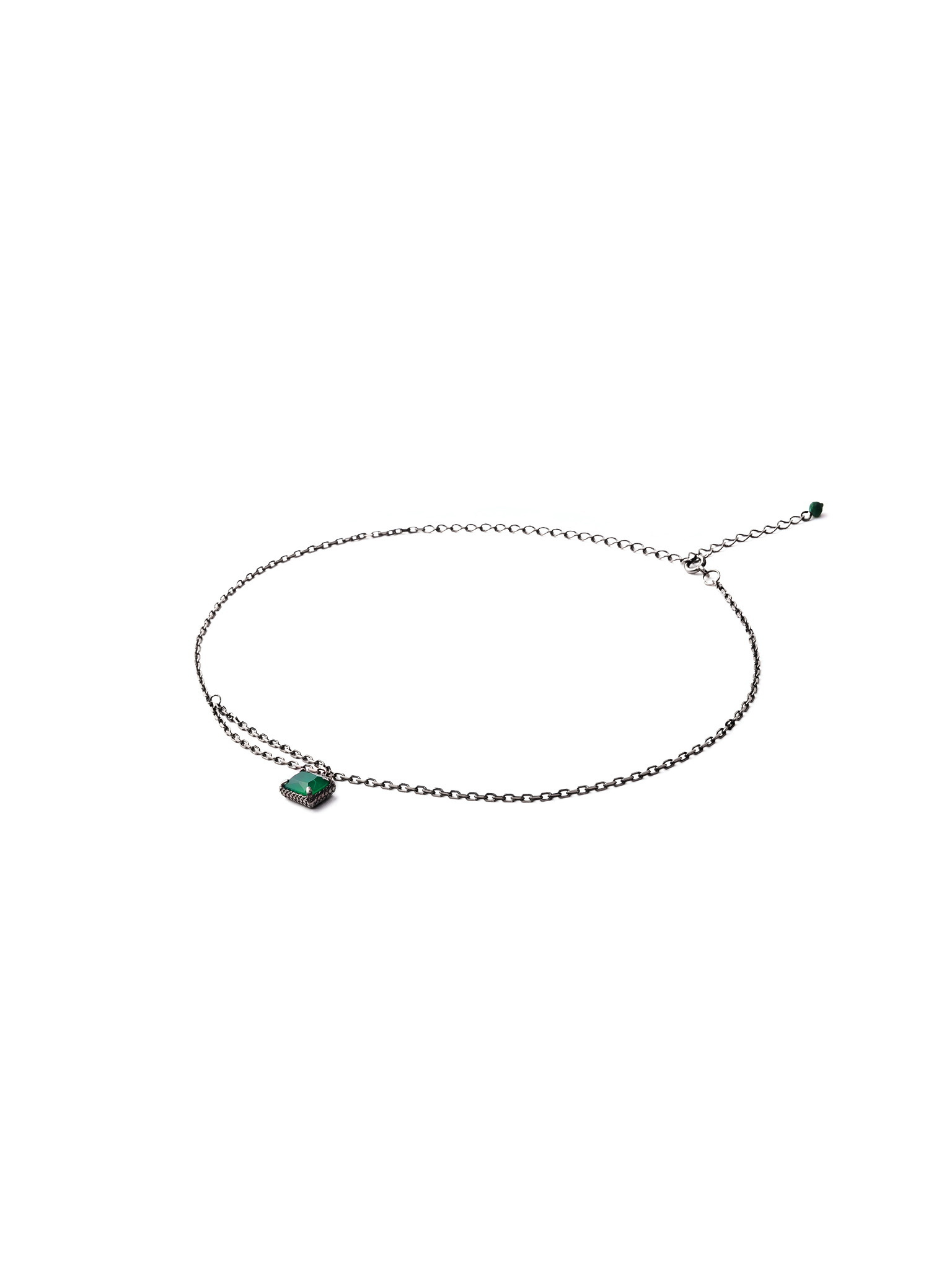 Серебряное колье-чокер «Змеиная натура» с зеленым агатом black