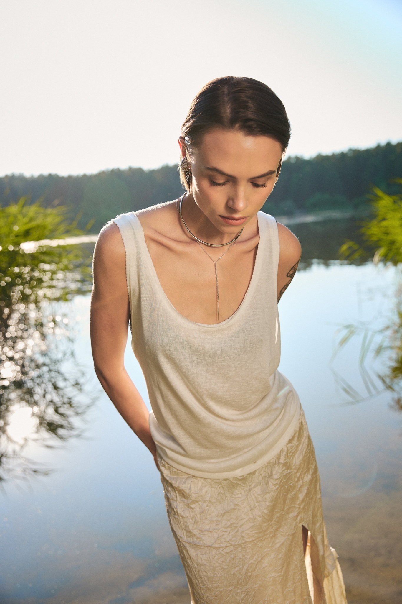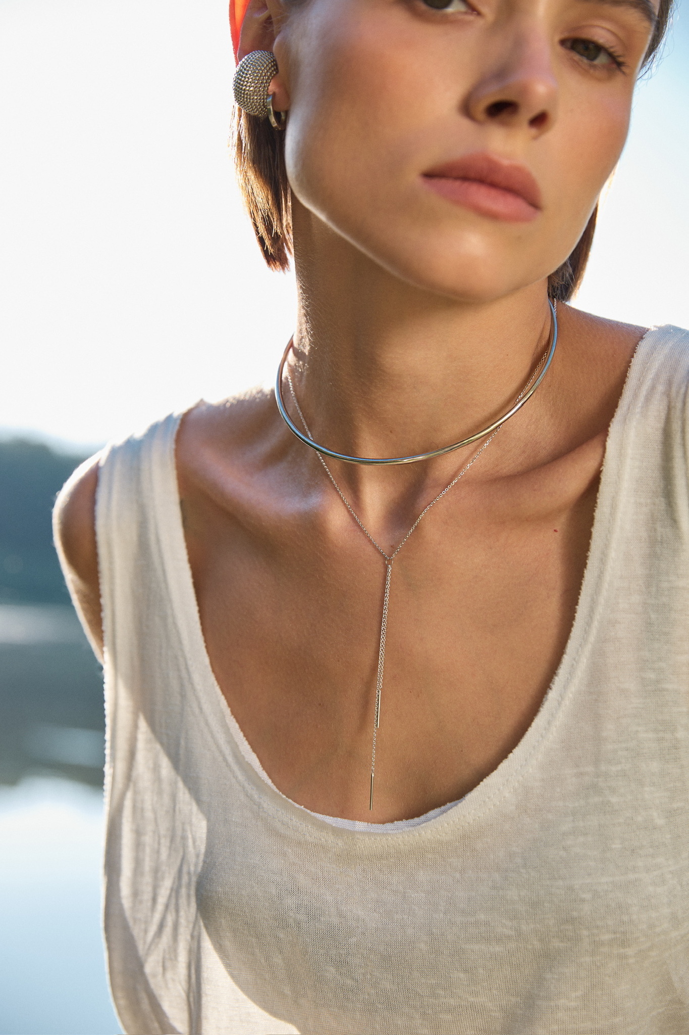 Серебряное колье-галстук мини