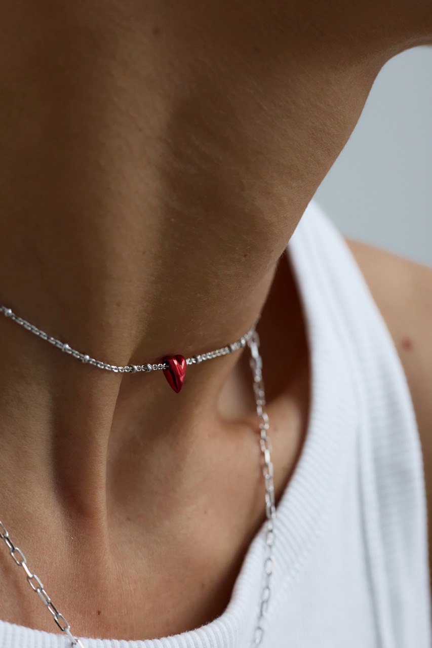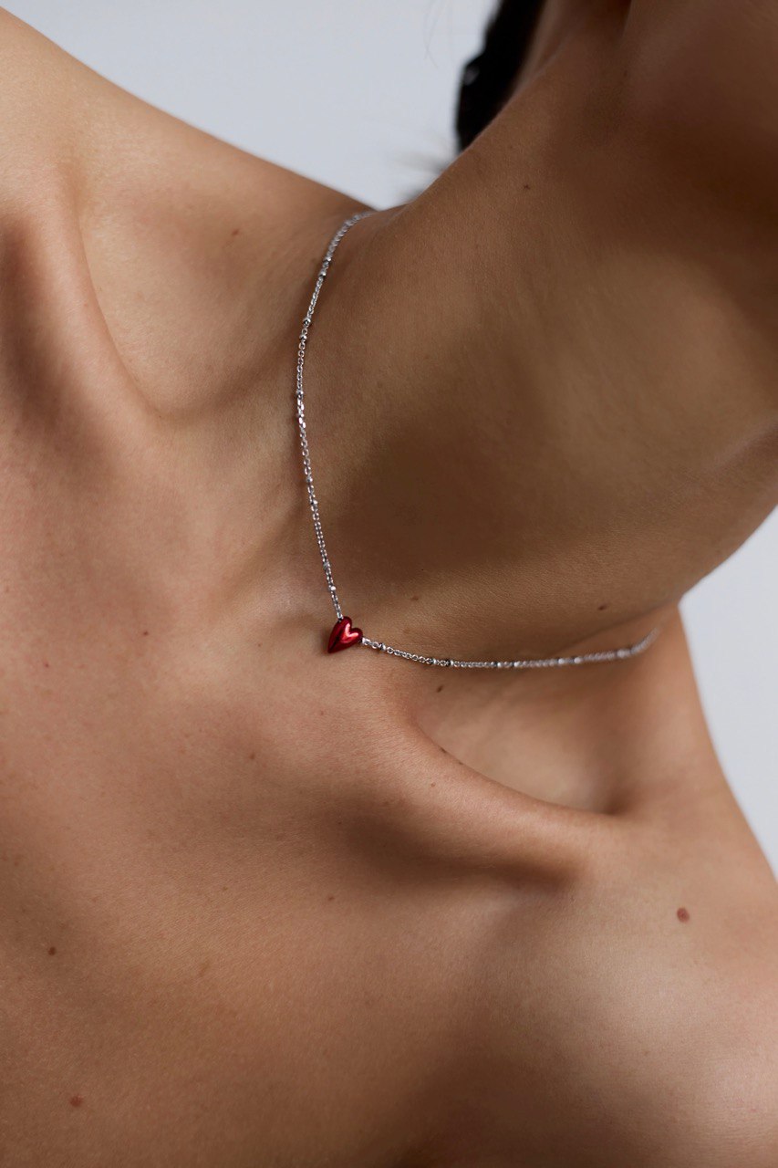 Серебряное колье на цепочке «Валентина полюбила» dark red