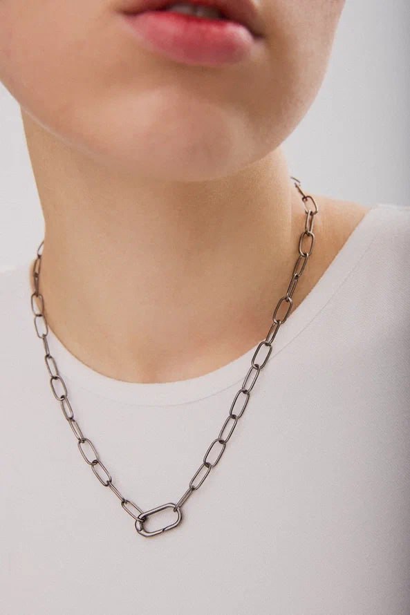 Серебряное колье с крупными звеньями «Королева драмы» черное