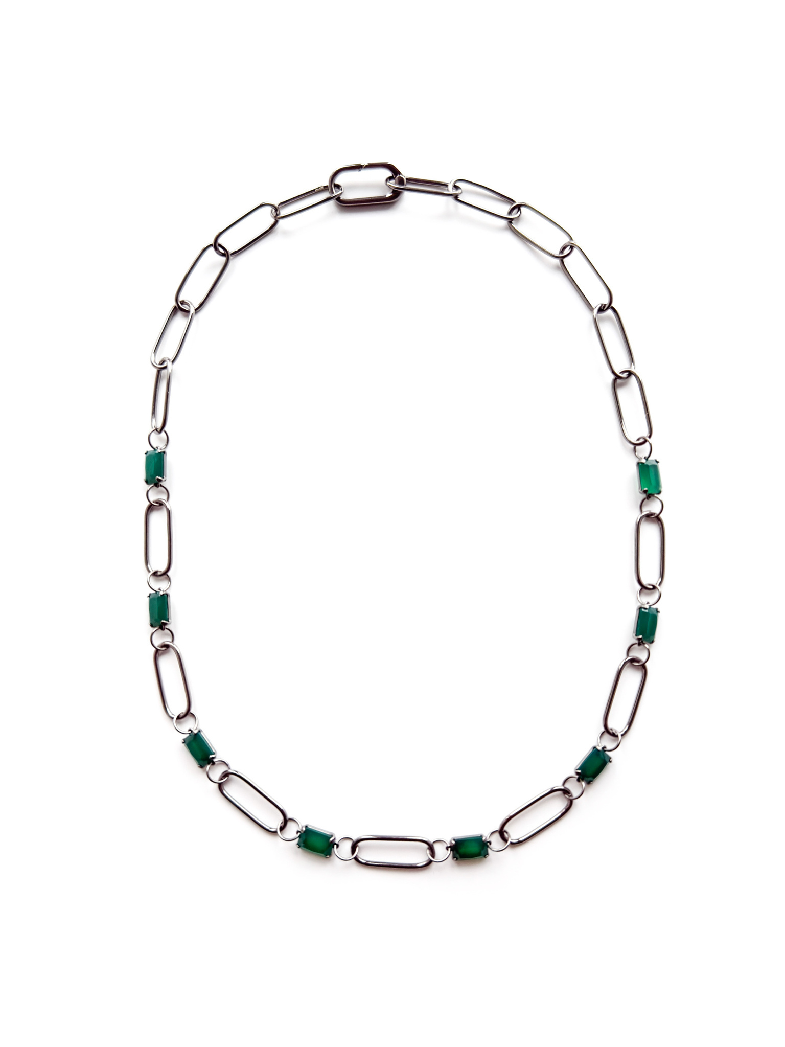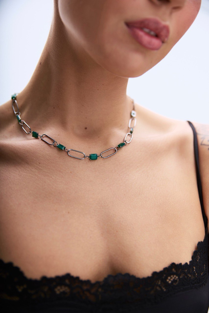 Серебряное массивное колье-чокер «Змеиная натура» с зеленым агатом, black
