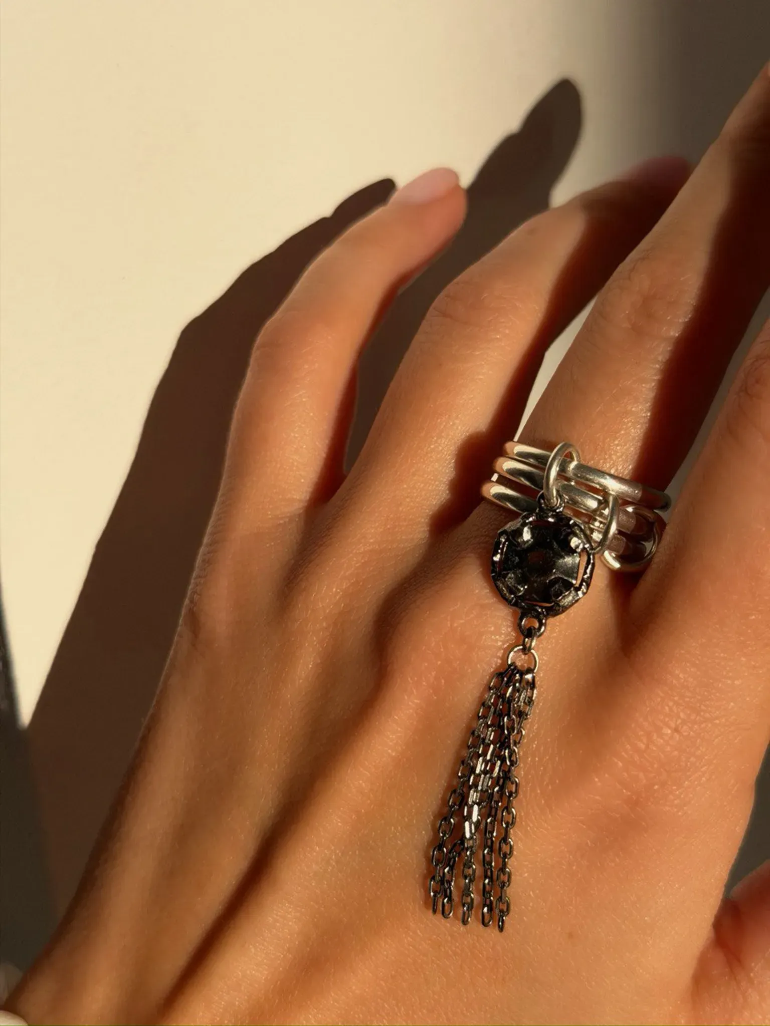 Серебряное тройное кольцо «Королева драмы»
