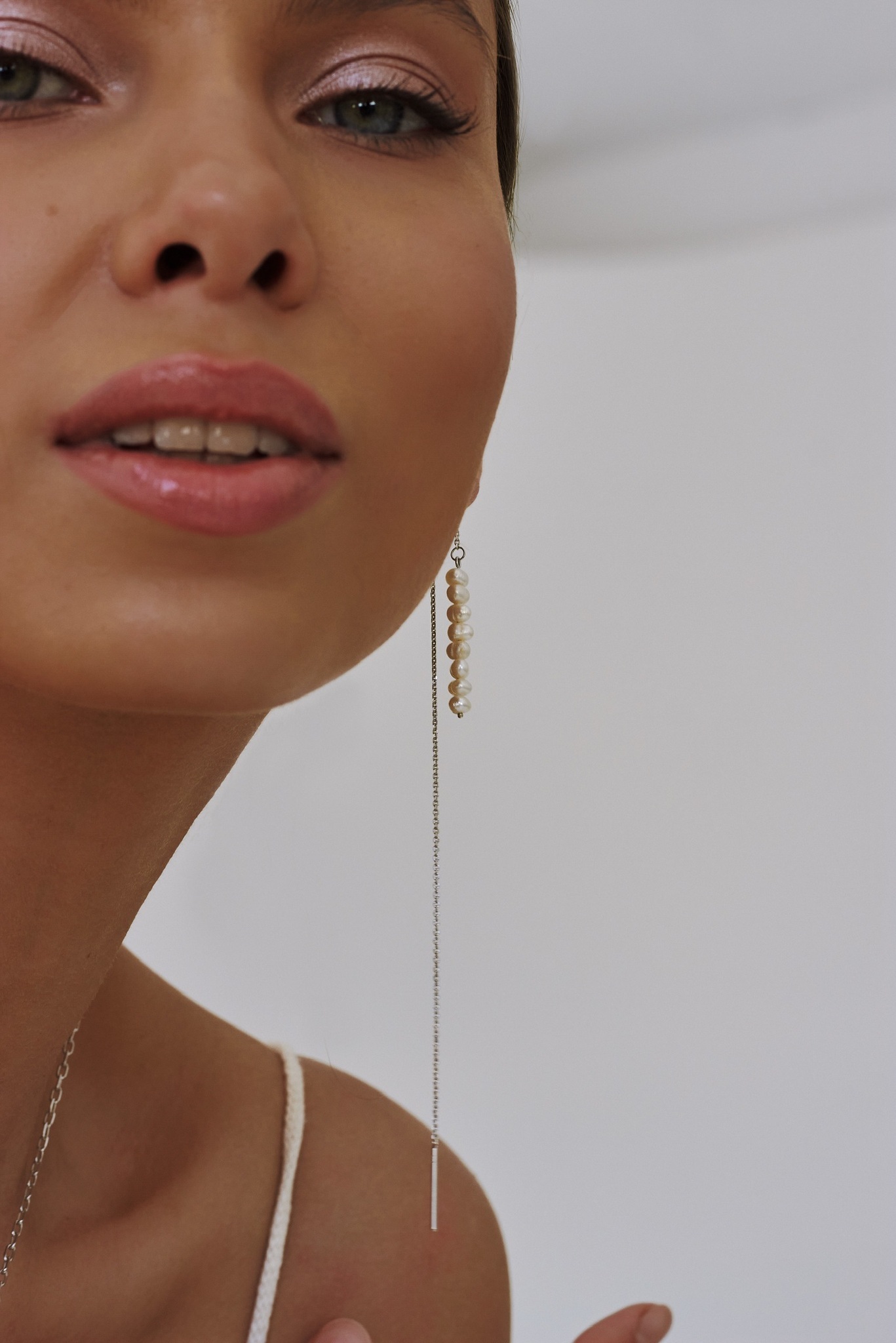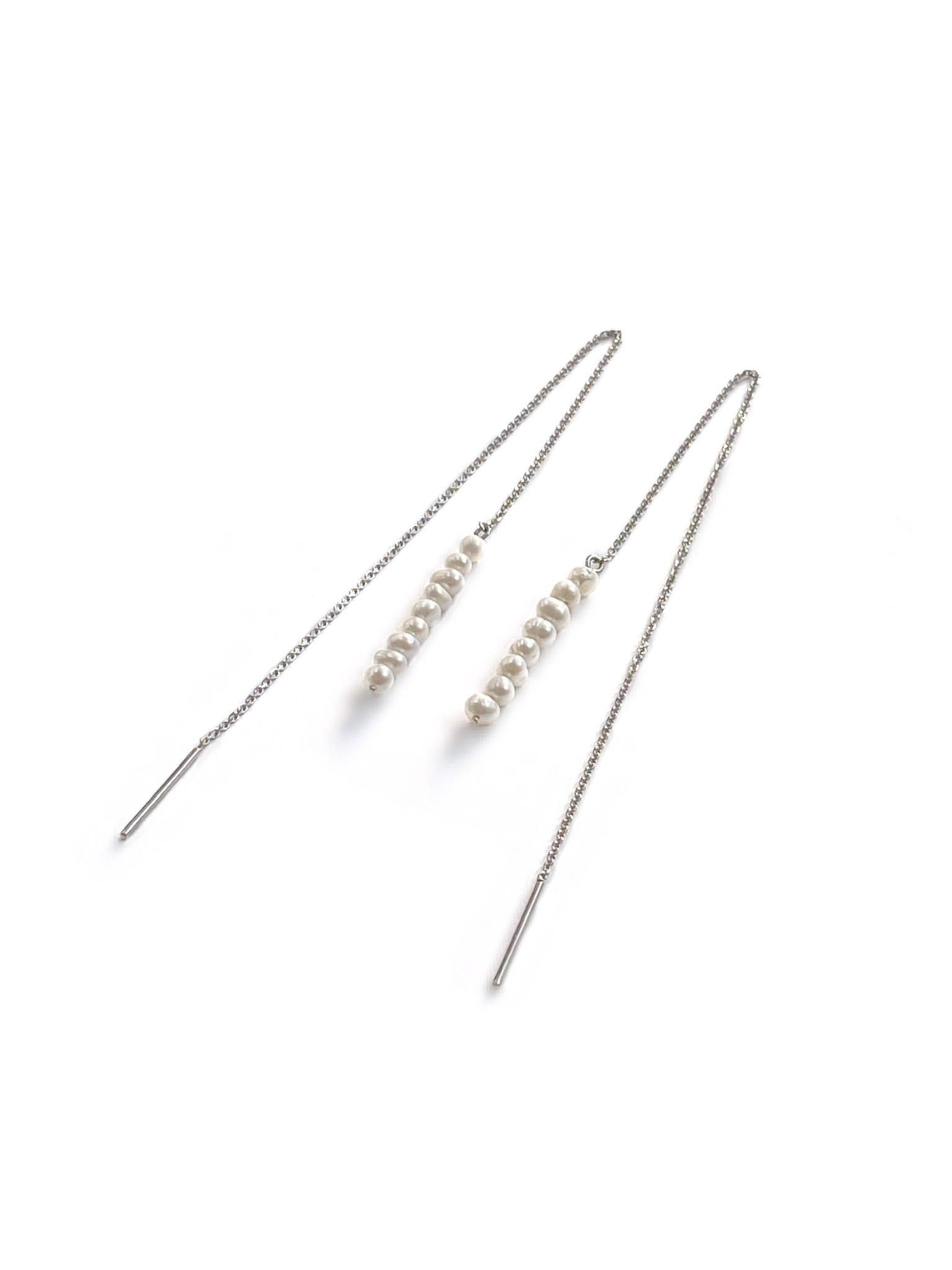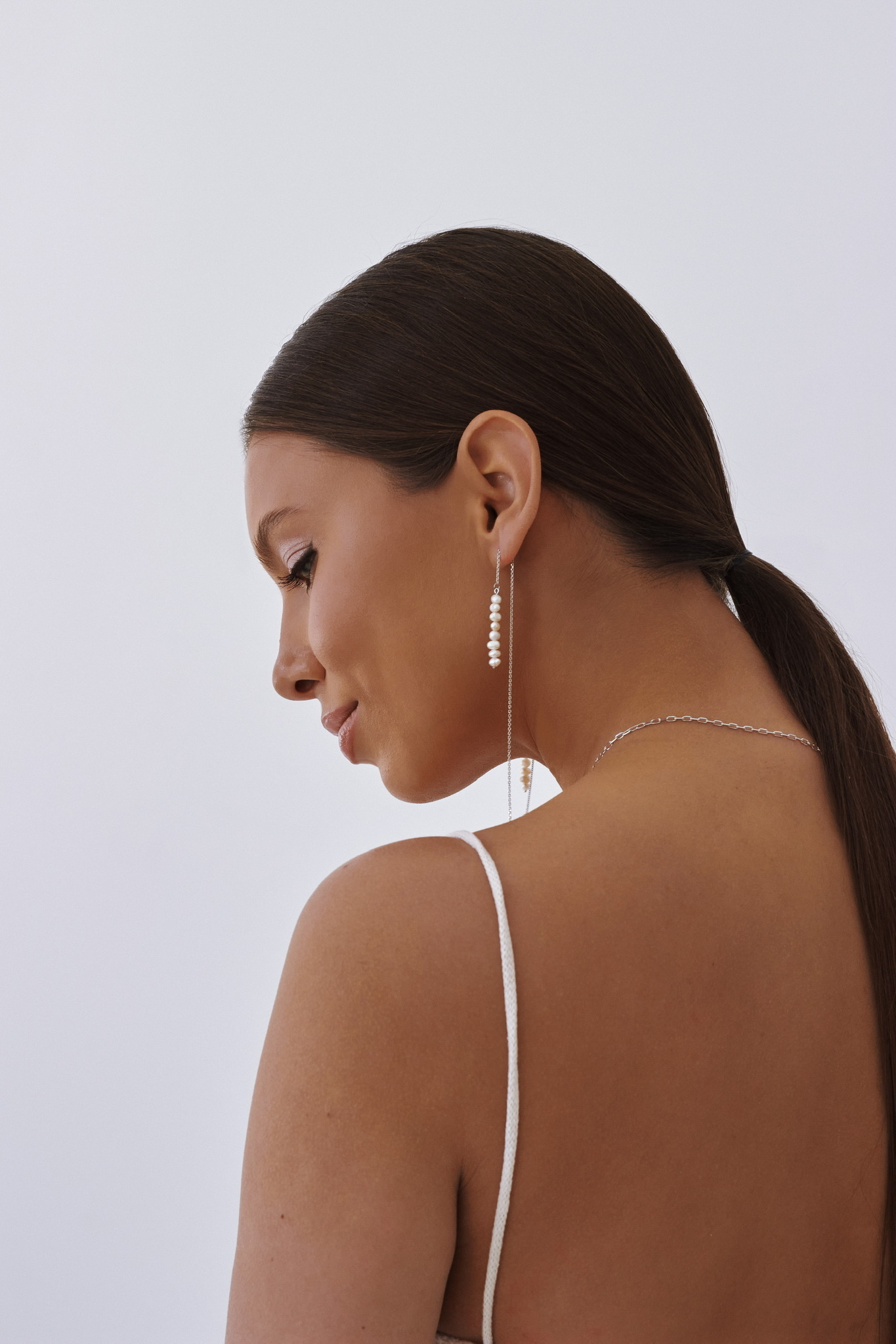 Серебряные серьги-продевки с культивированным жемчугом "Base Pearl"