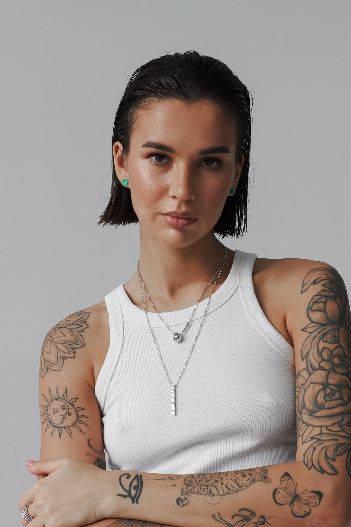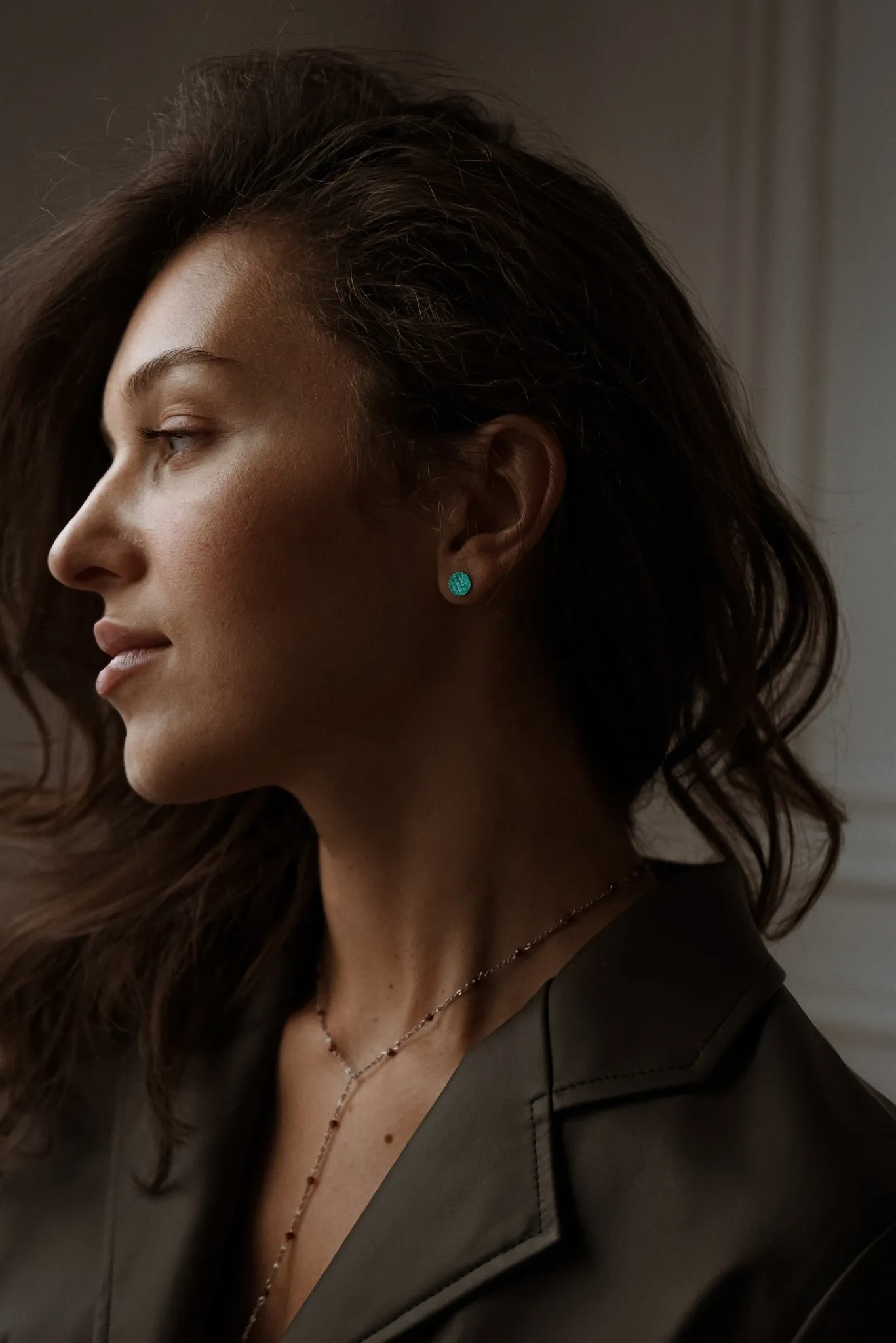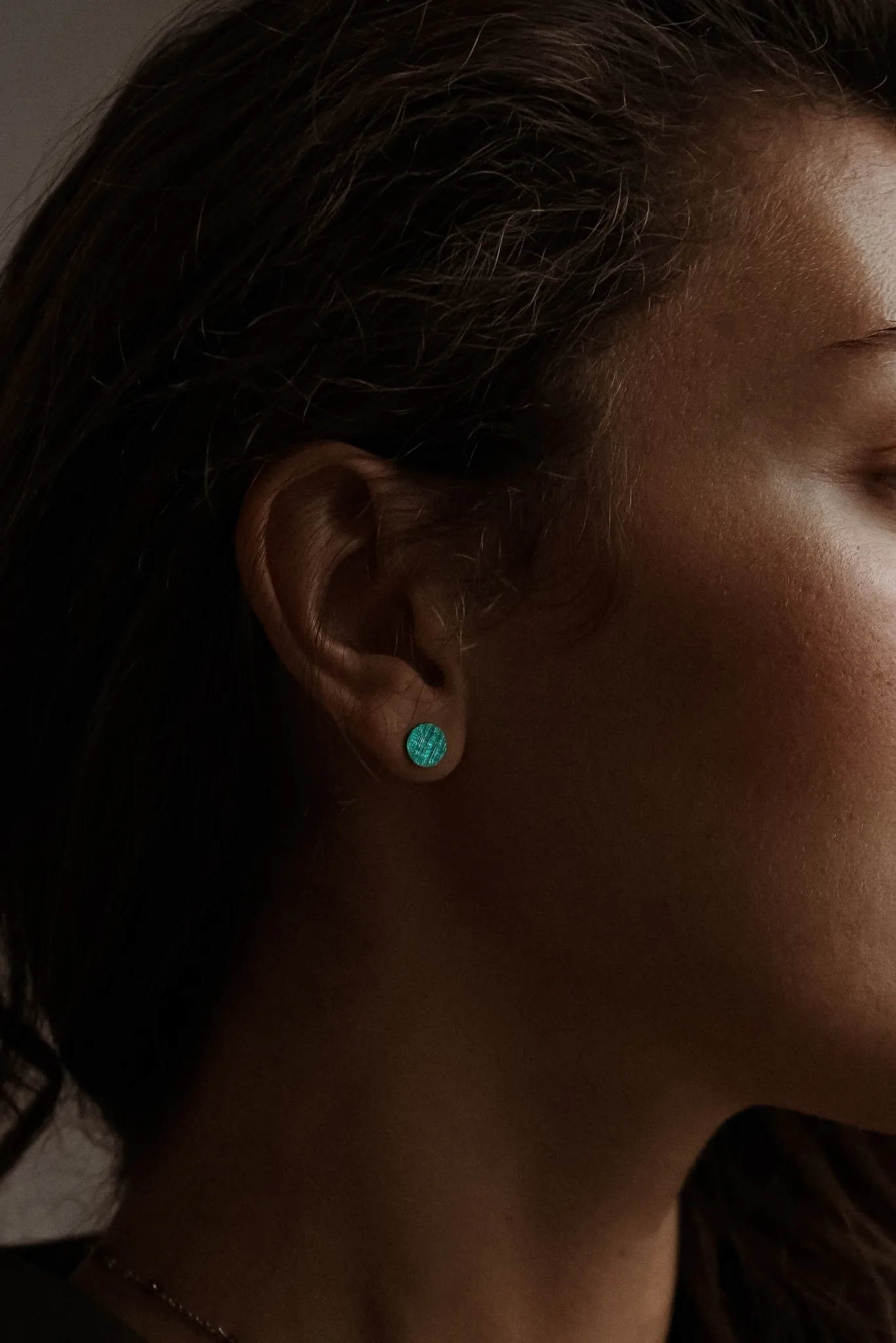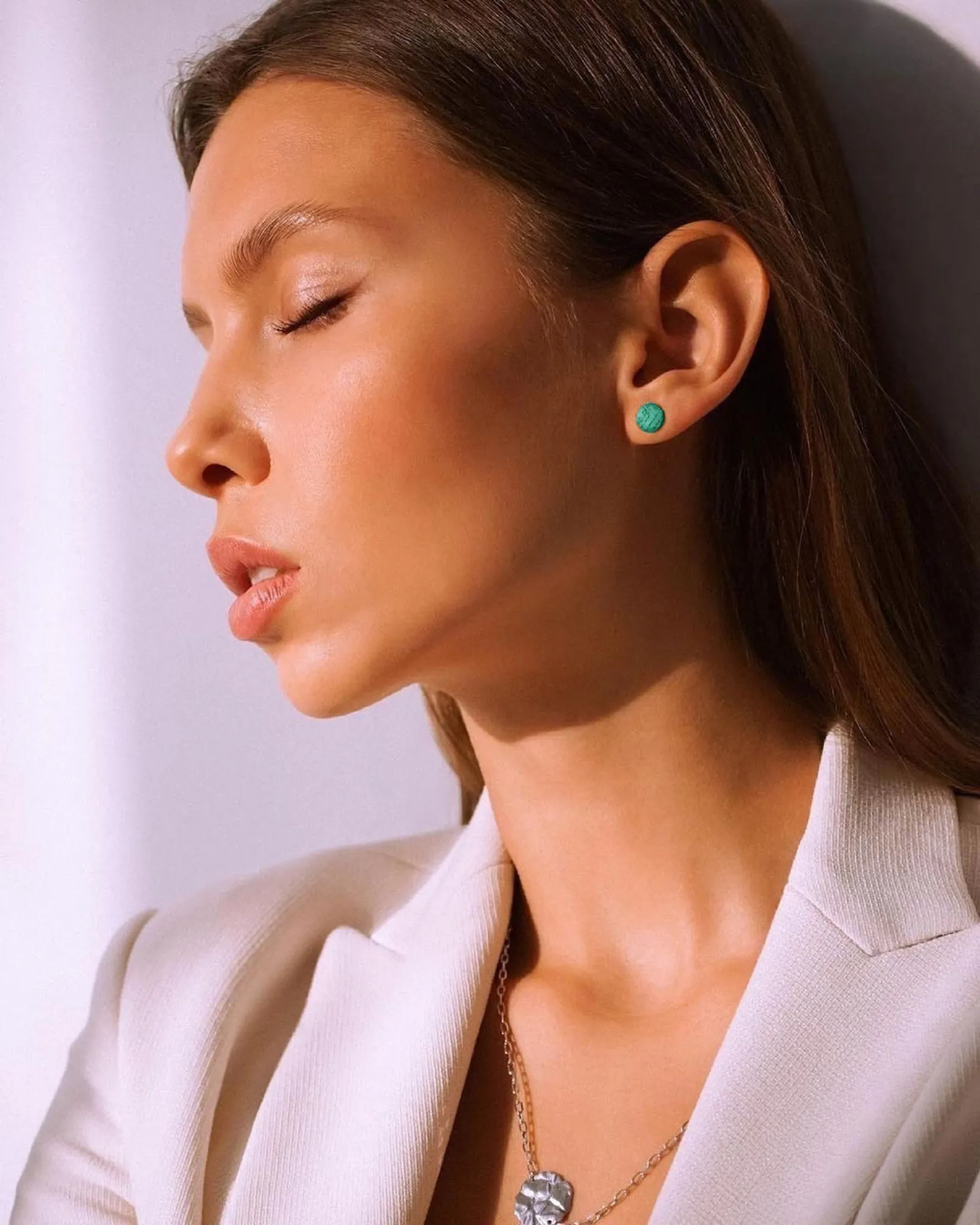 Серебряные серьги-пусеты «Круг» green