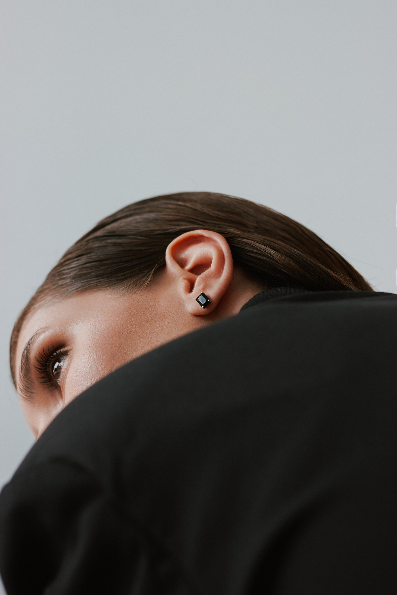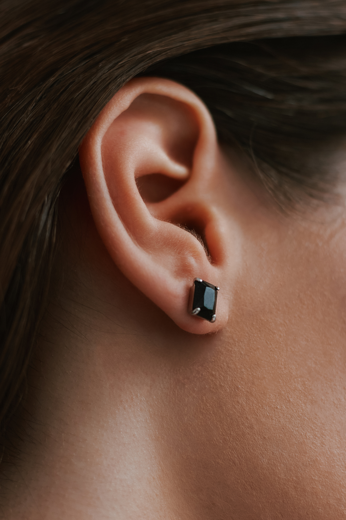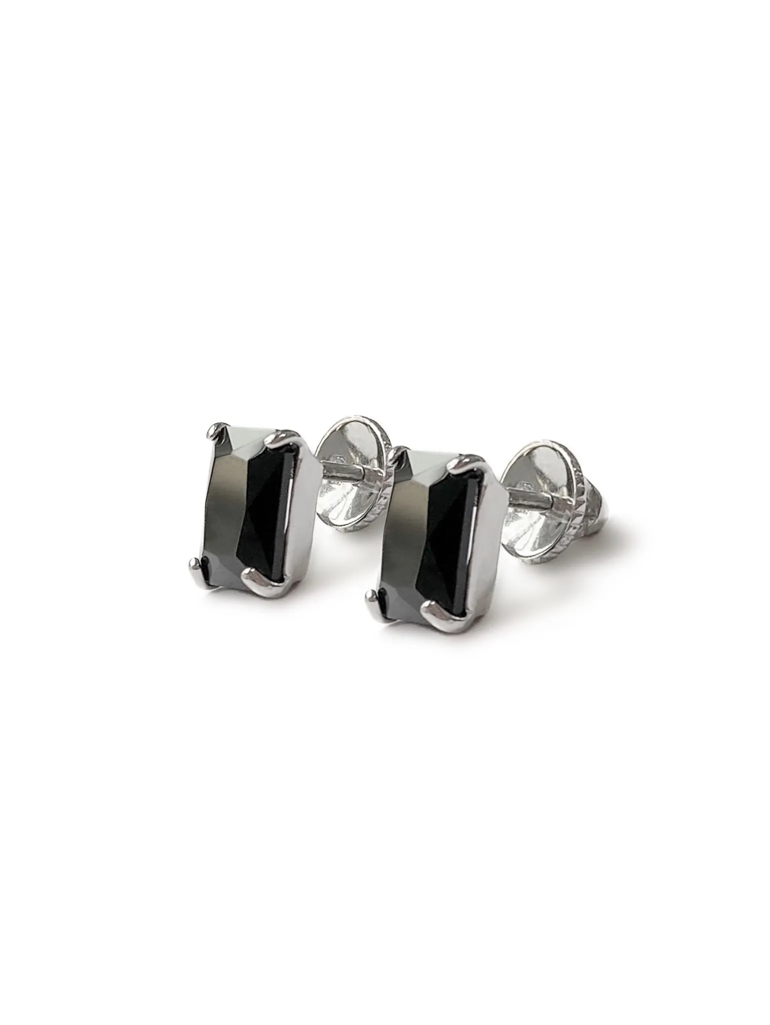 Серебряные серьги-пусеты «Лед» black с черным агатом
