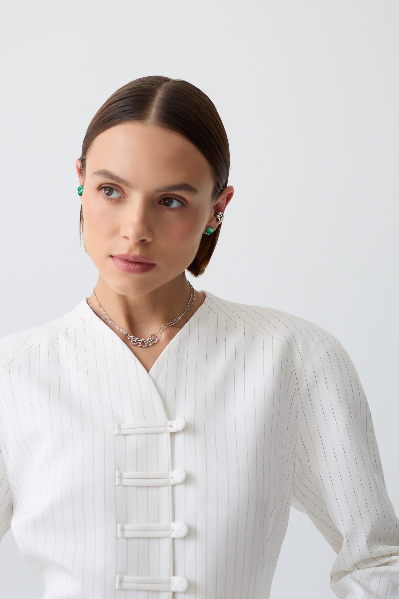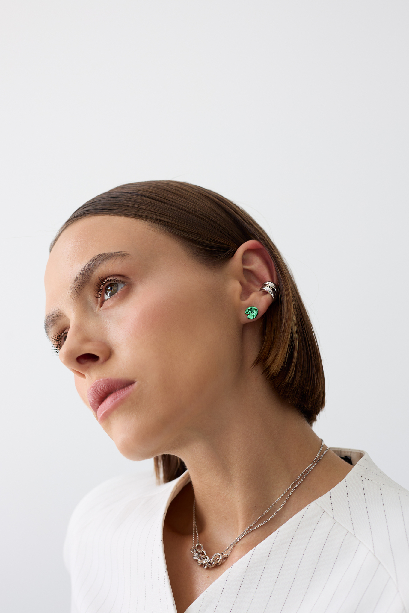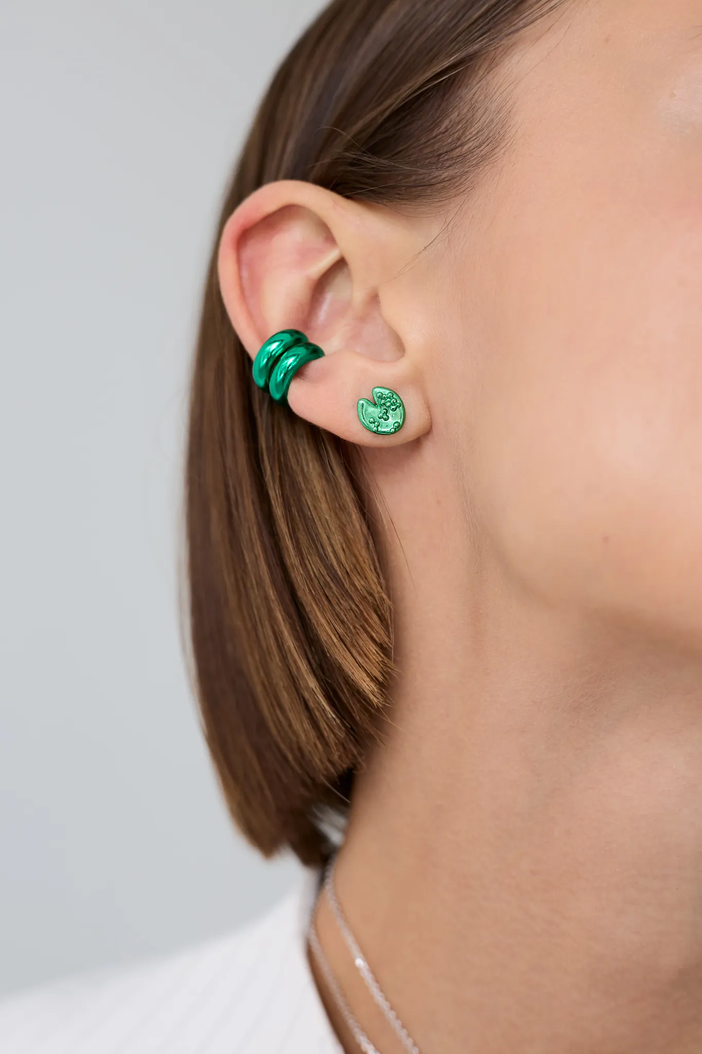 Серебряные серьги-пусеты «Васюганские болота» green