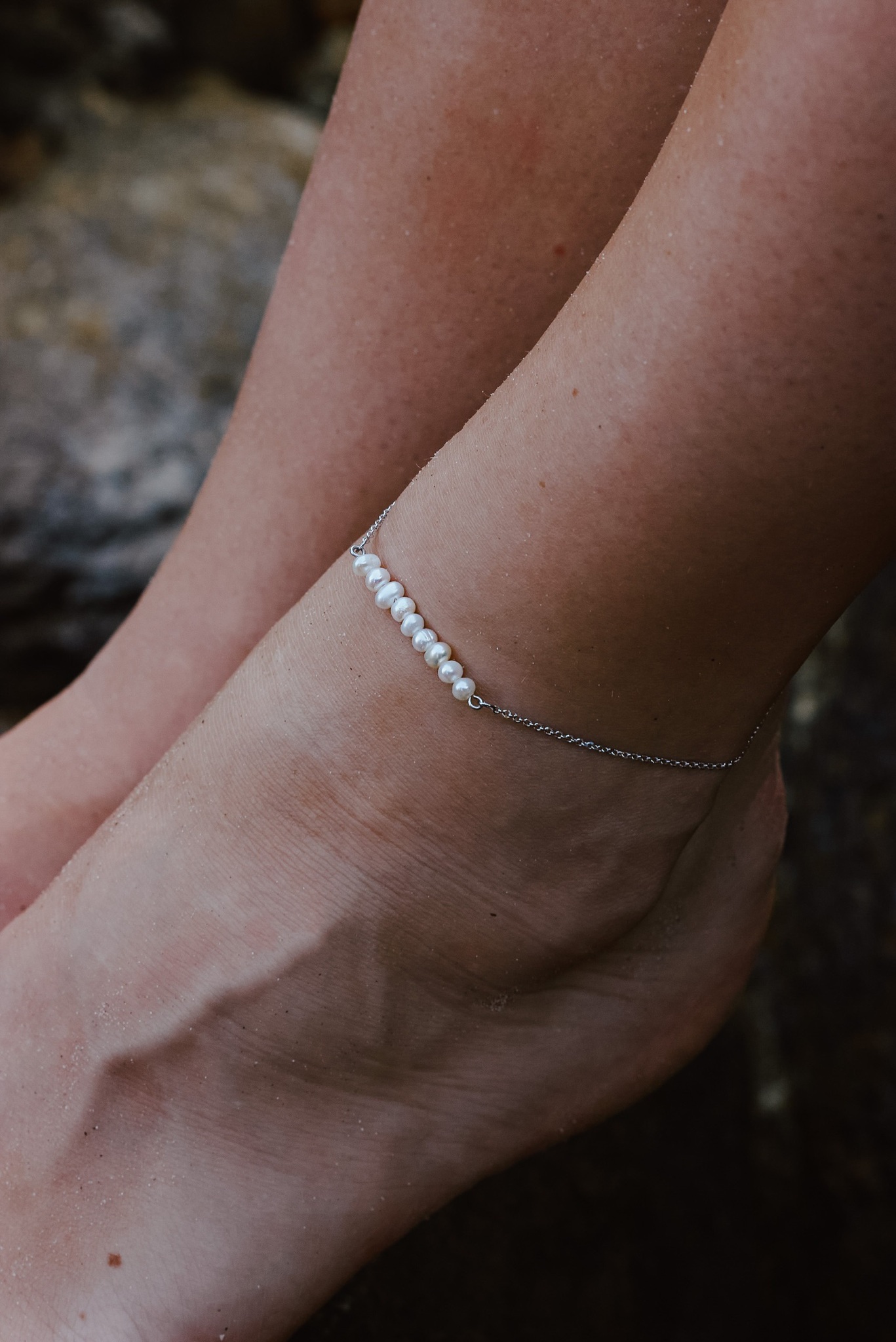 Серебряный браслет на ногу «Жемчужина»