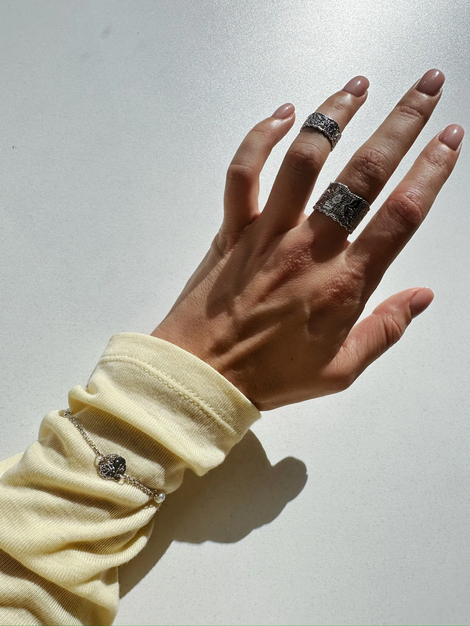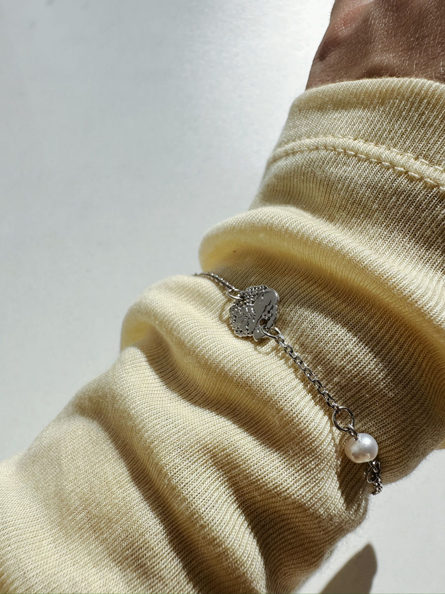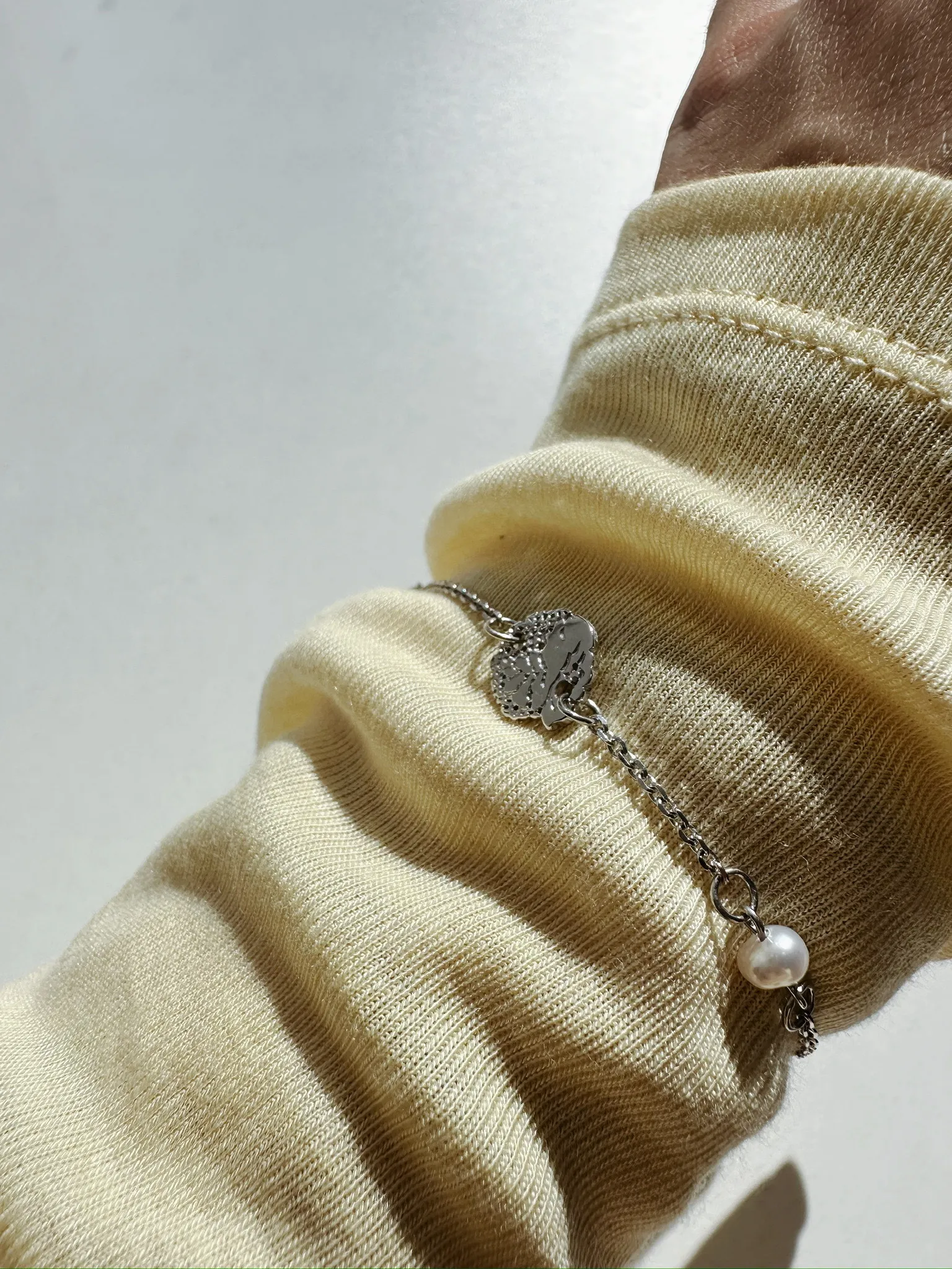 Серебряный браслет на цепочке «Кружево» с культивированным жемчугом