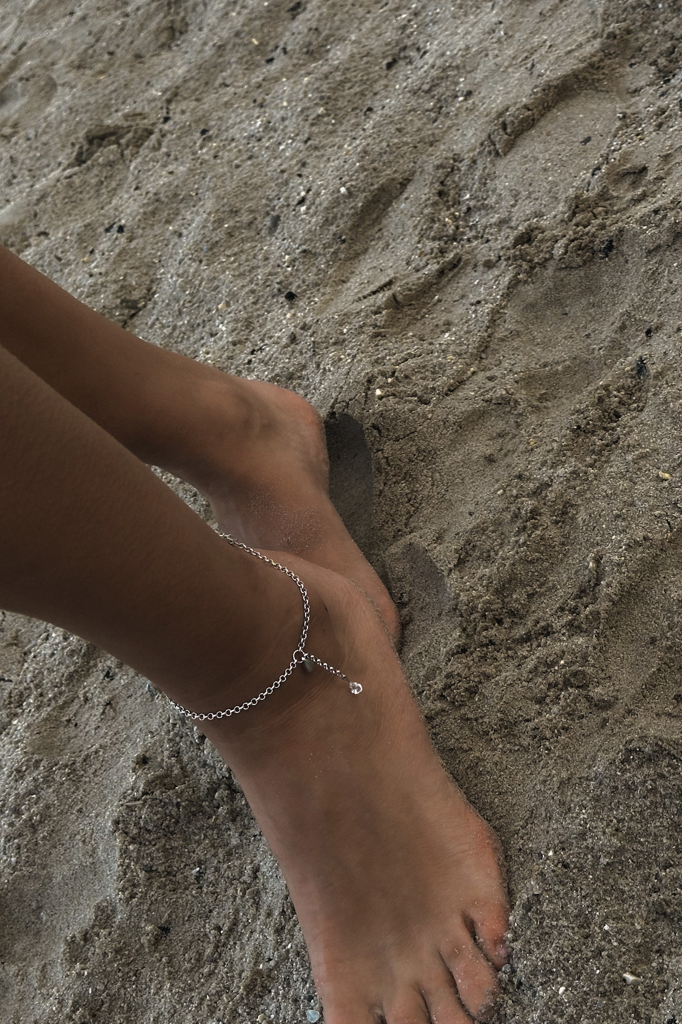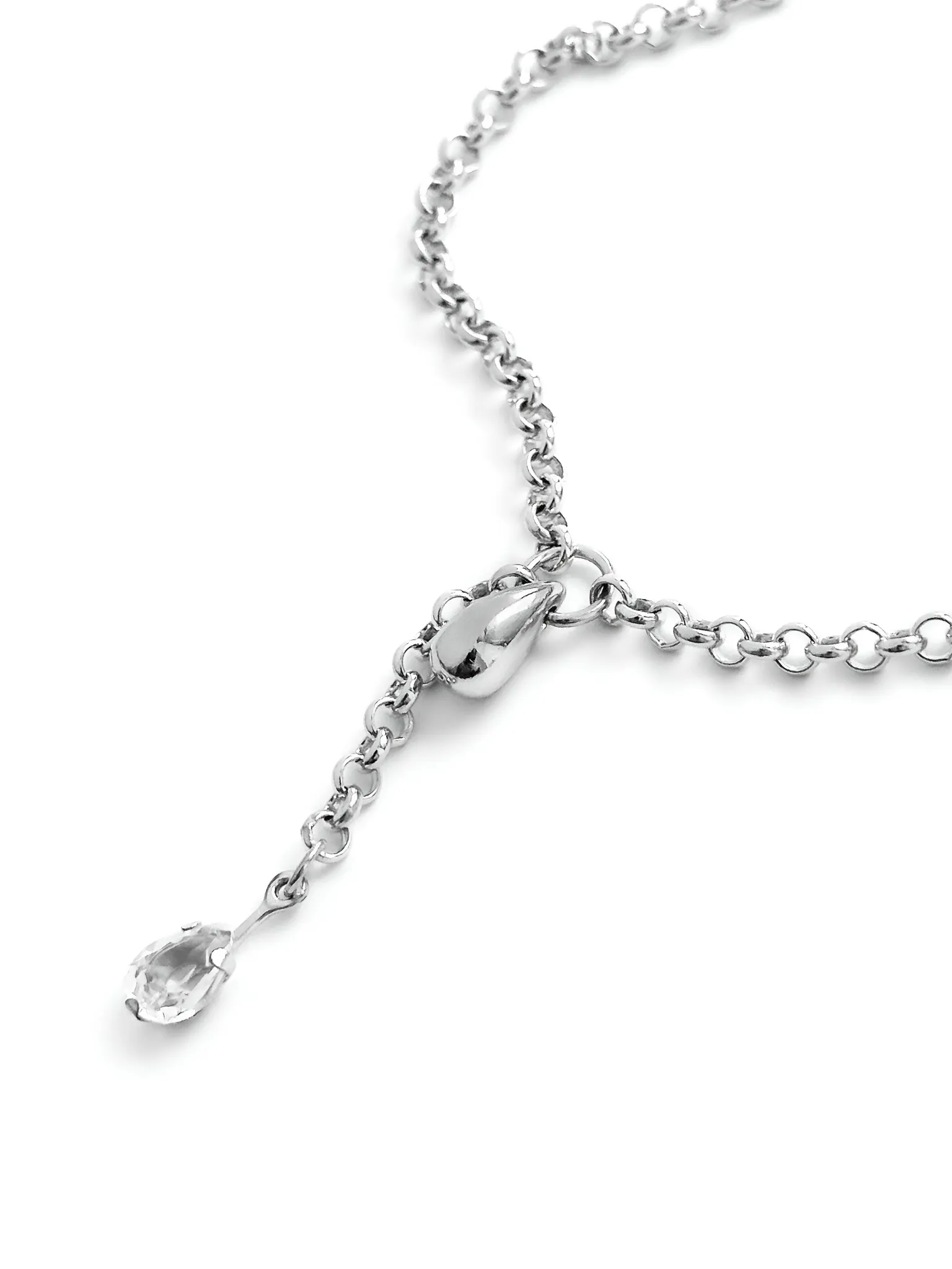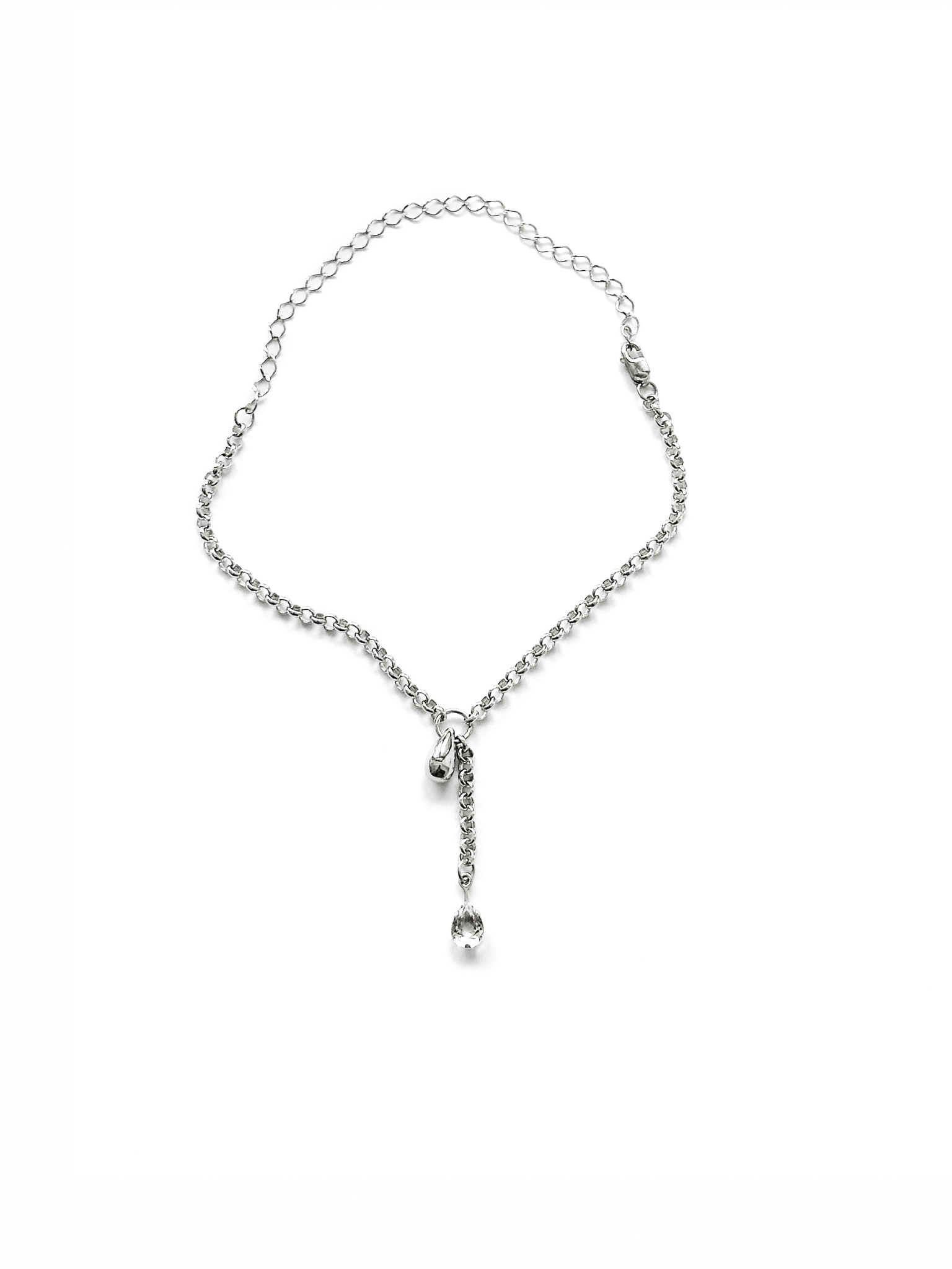 Серебряный браслет на цепочке на ногу "Drop" с горным хрусталем