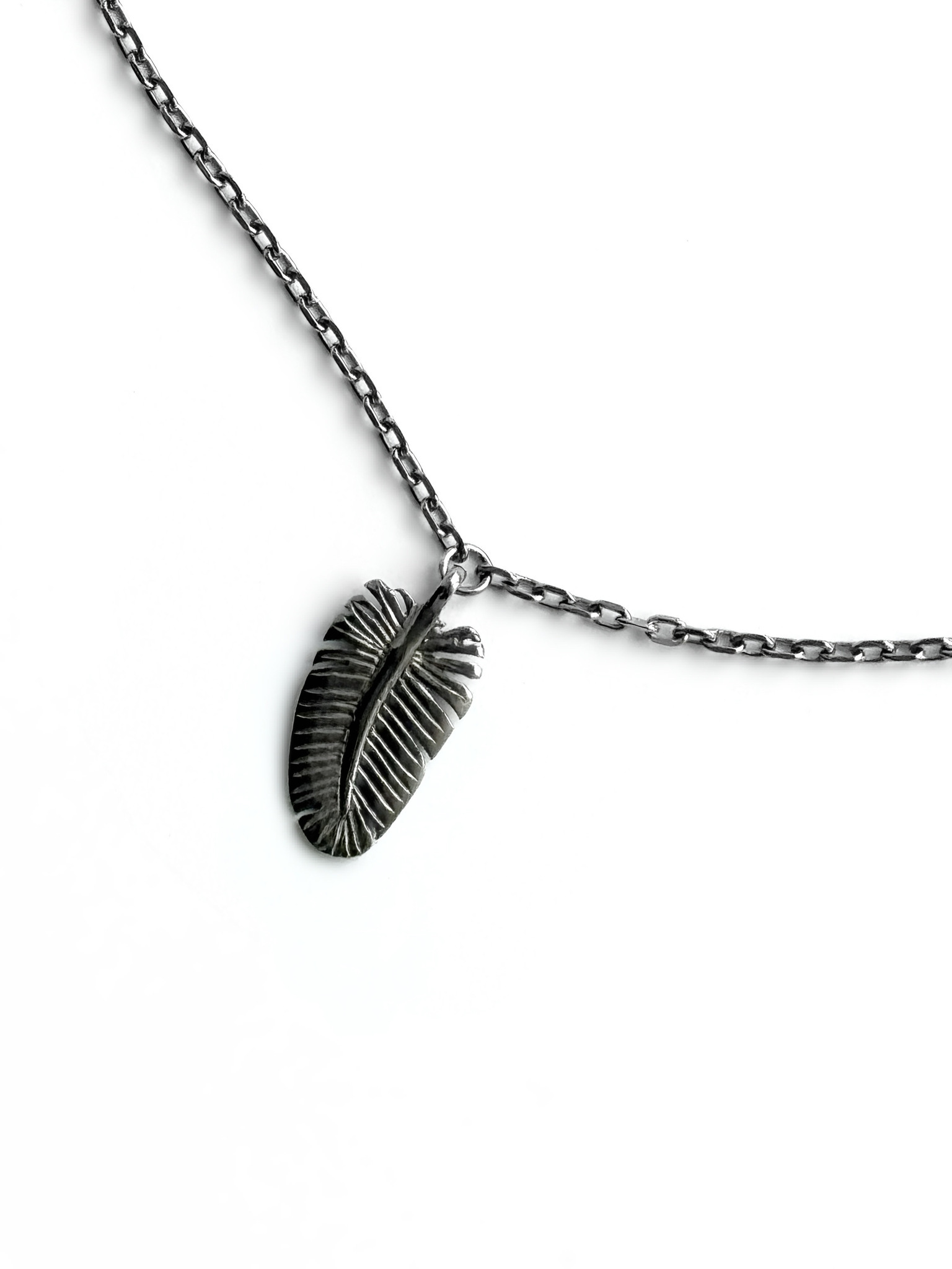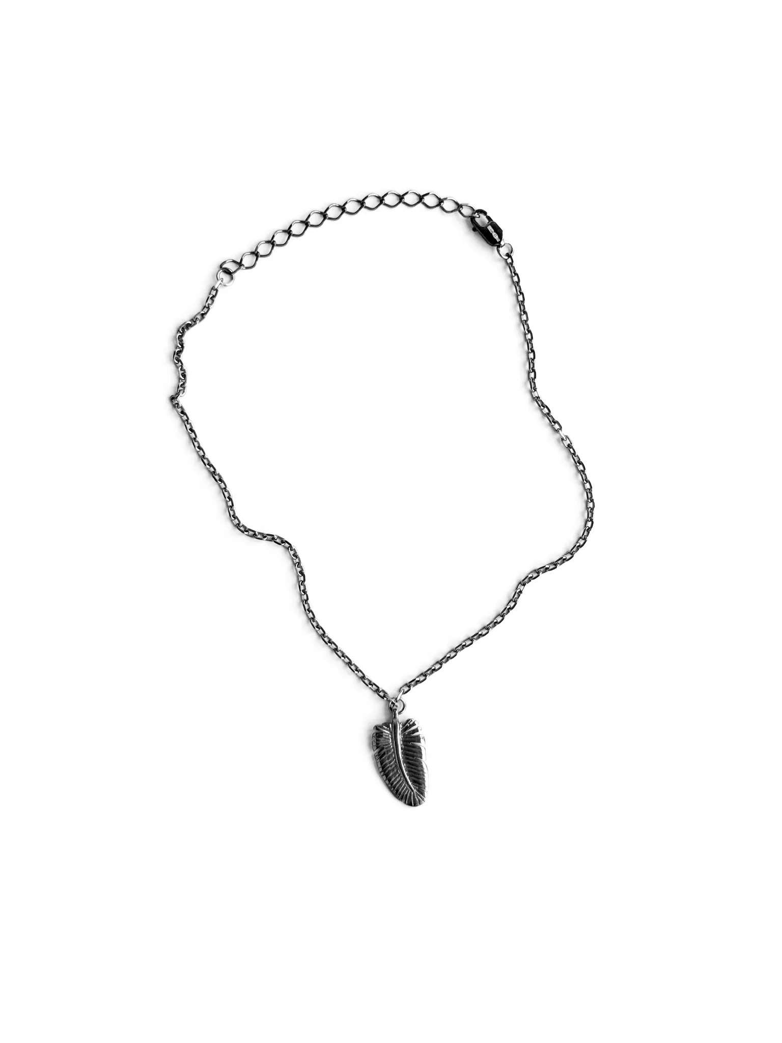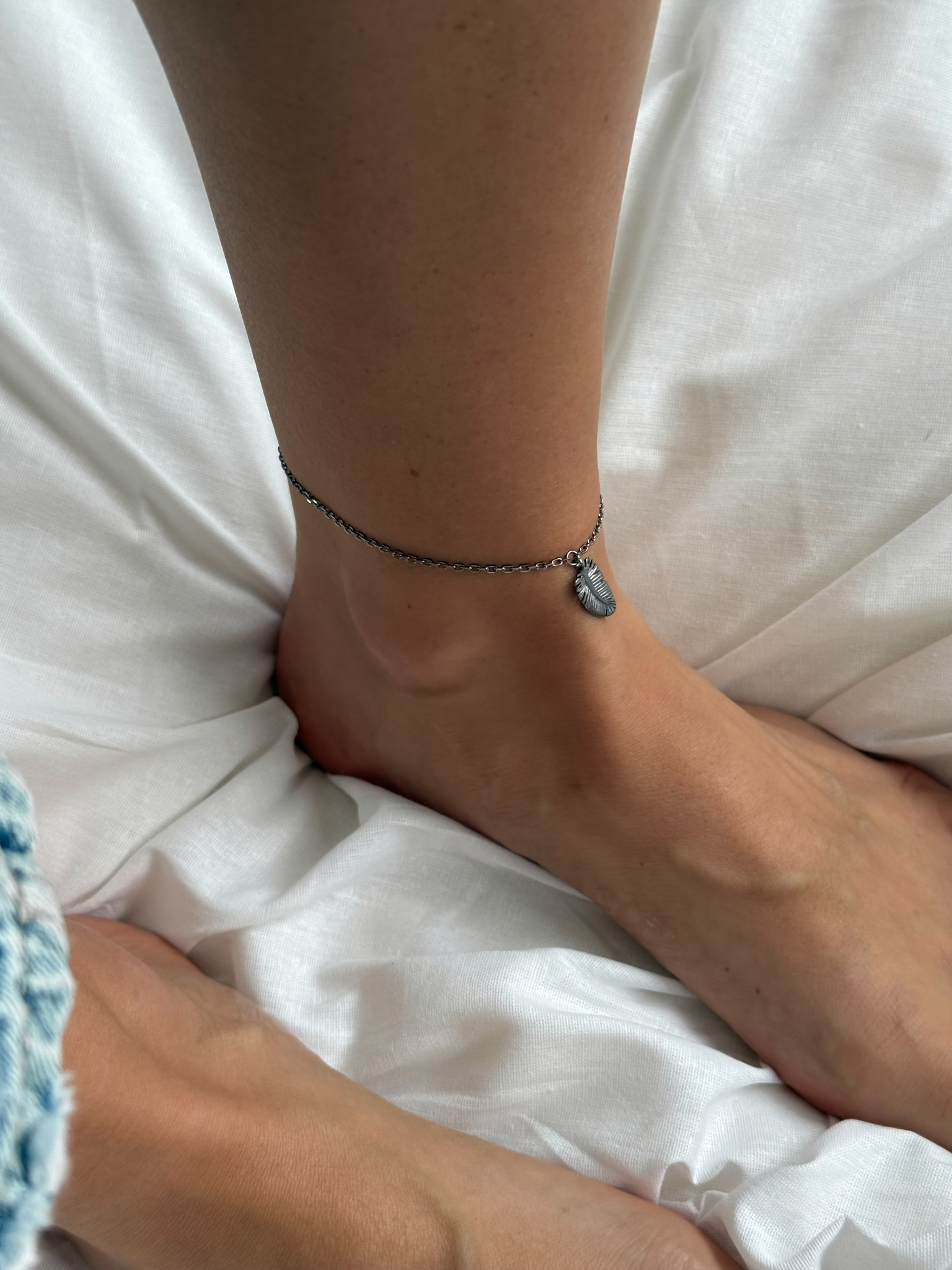 Серебряный браслет на цепочке на ногу «Перо» black