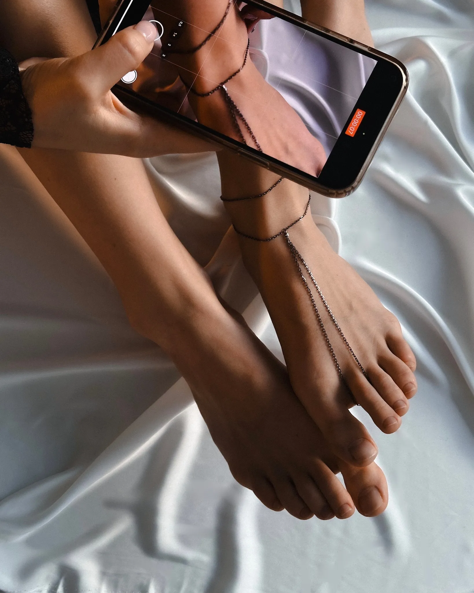 Серебряный браслет-слейв на ногу black