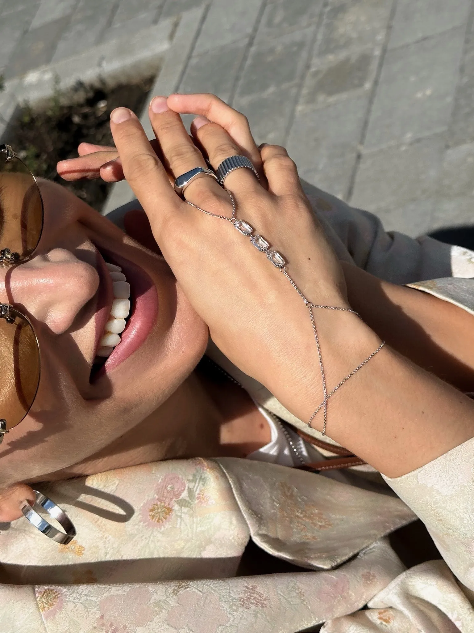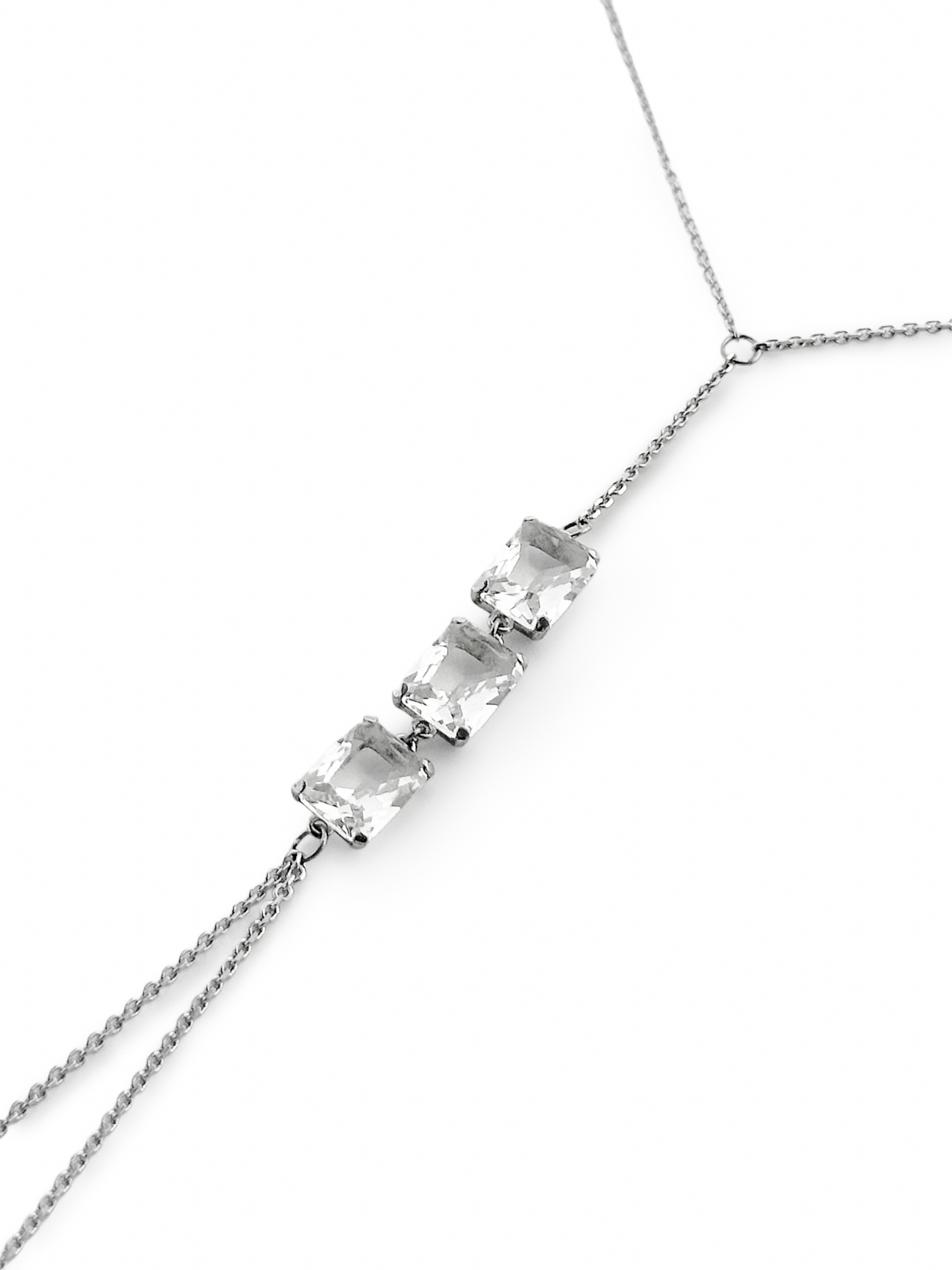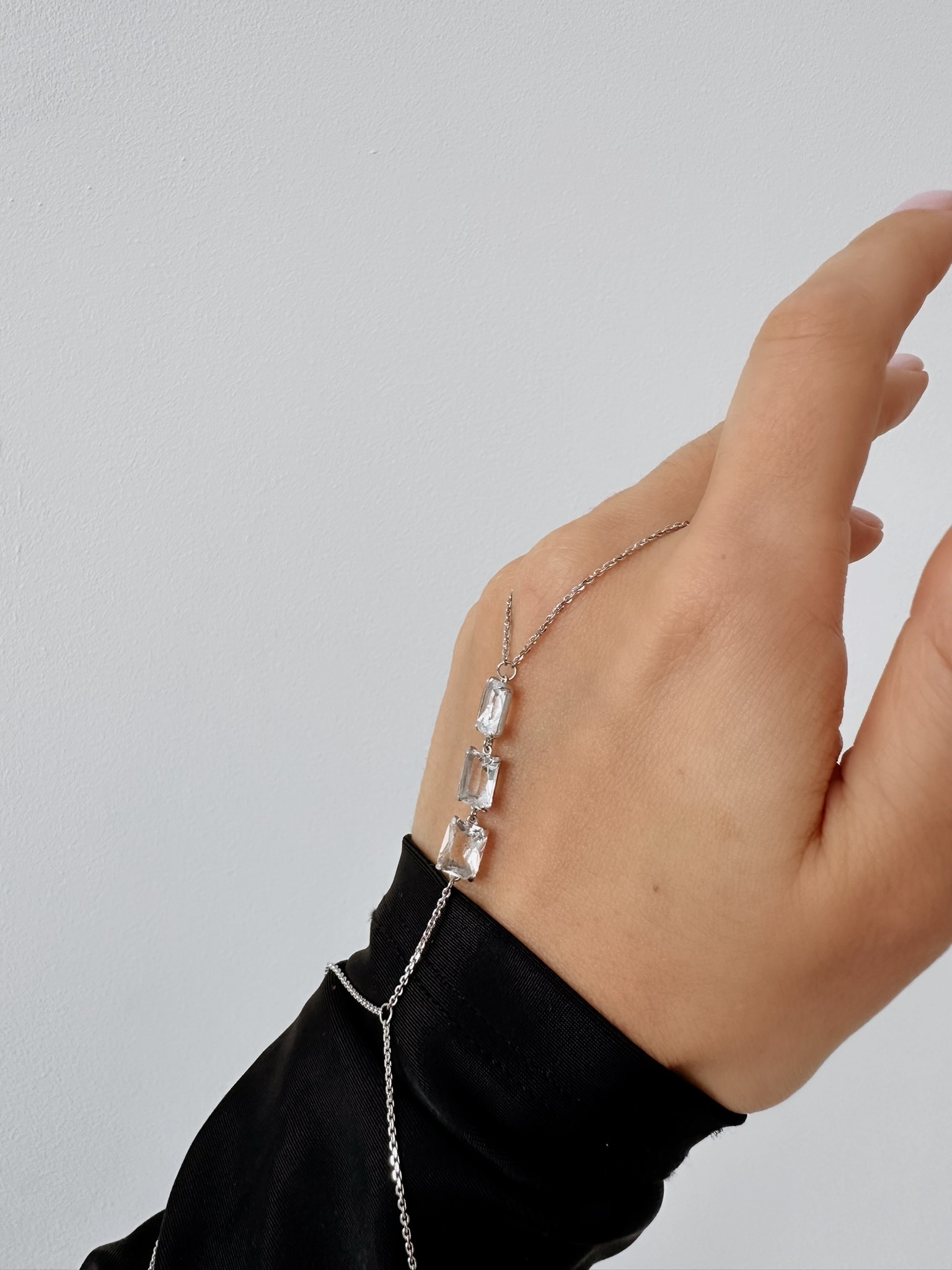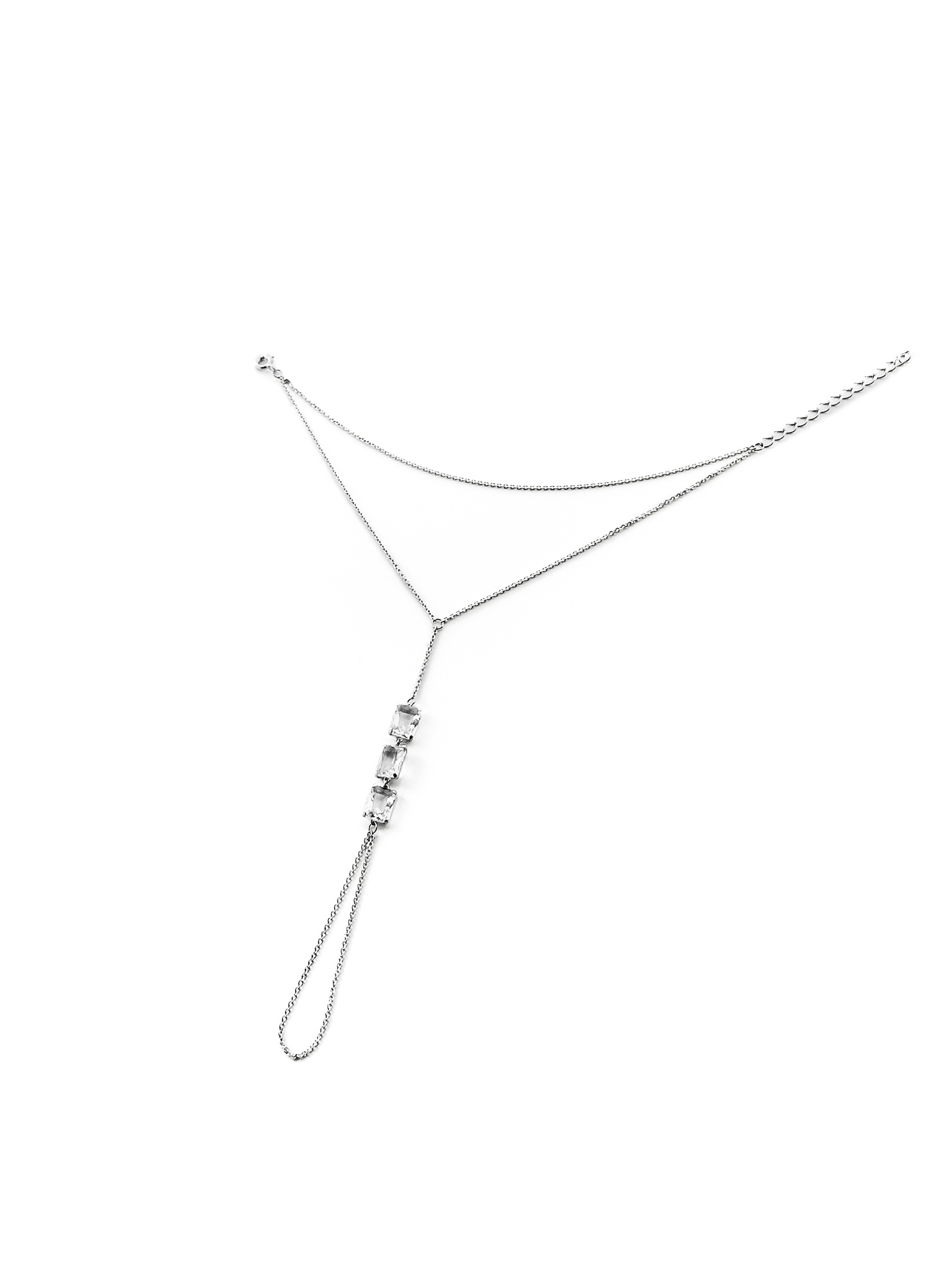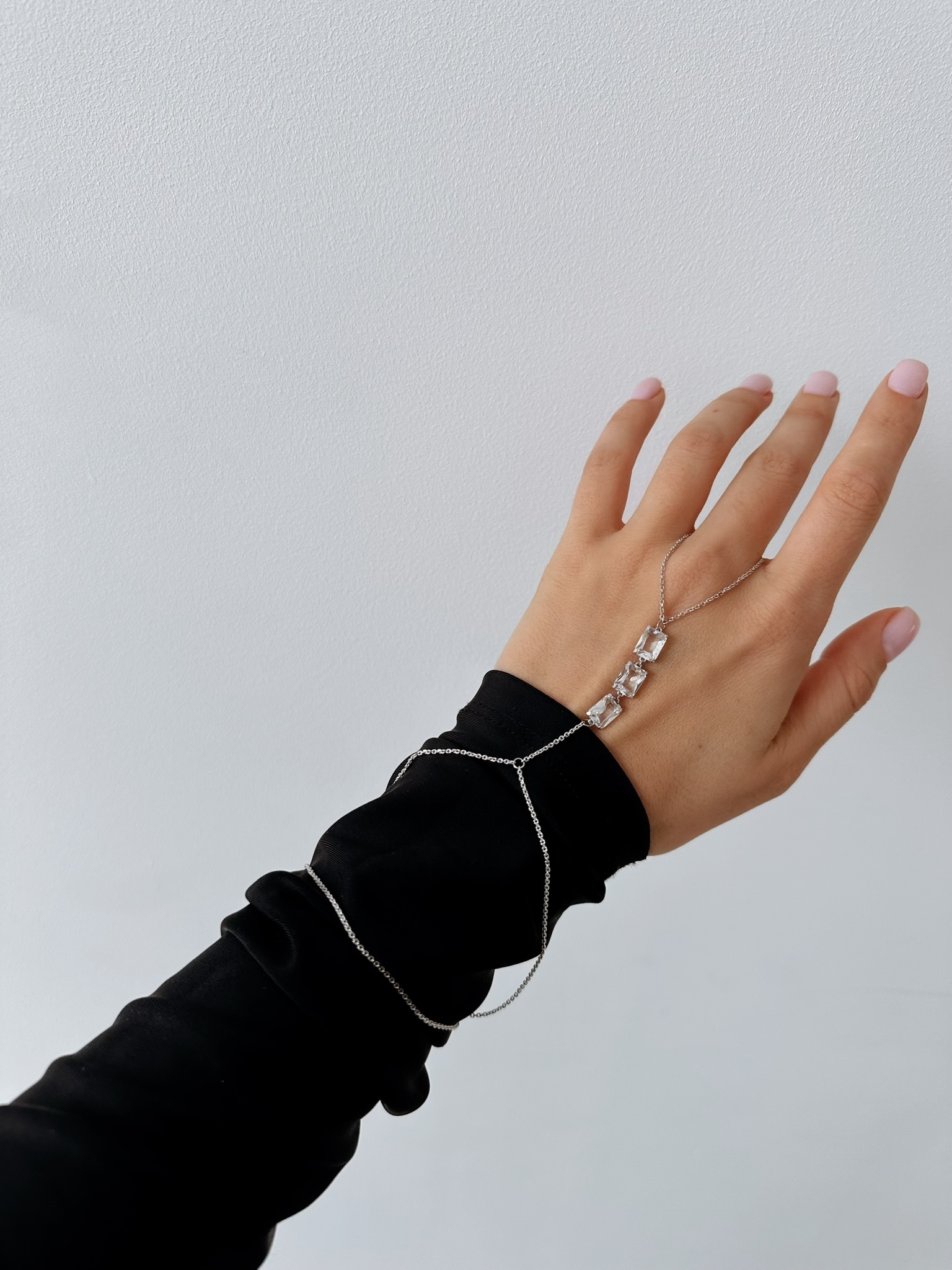 Серебряный браслет-слейв на цепочке на руку с горным хрусталем