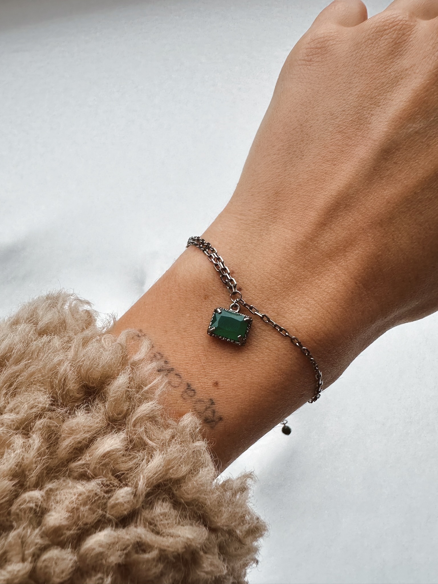 Серебряный браслет «Змеиная натура» с зеленым агатом black