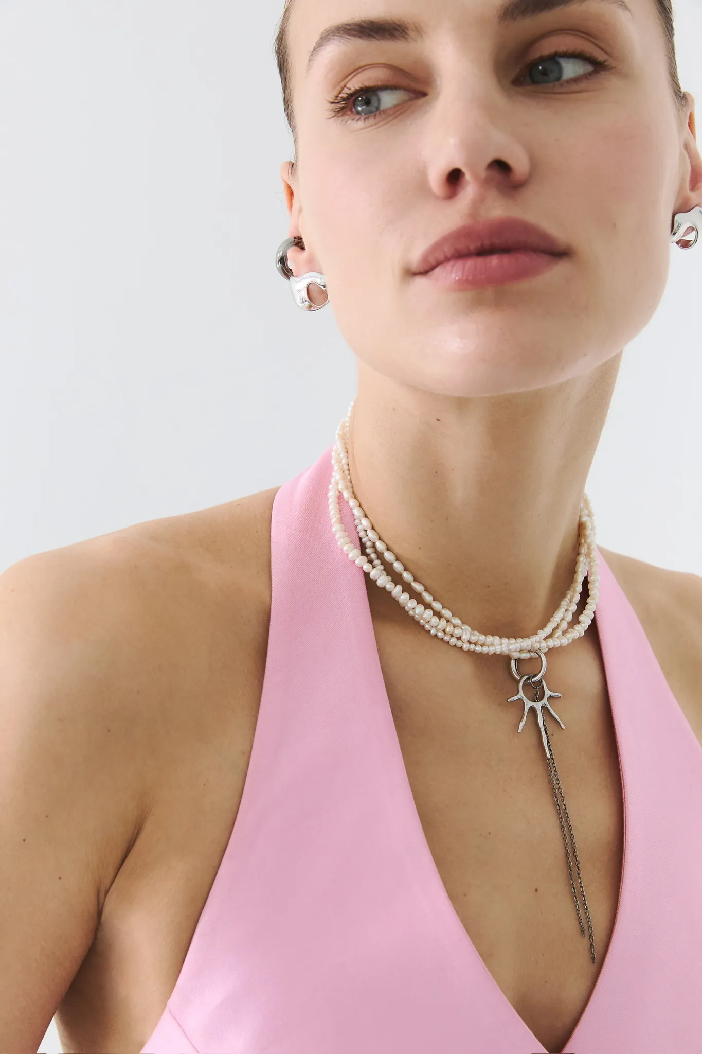 Серебряный круглый карабин-основа для колье и серьги